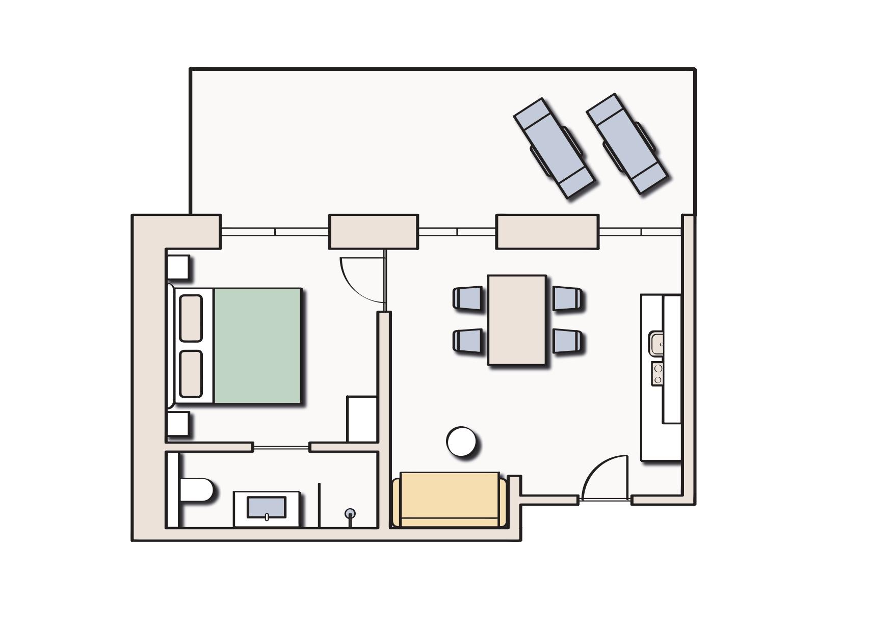 2 – 4 Personen, 32 m² Da scheint die Sonne rein: In diesem Apartment kannst du von fast allen Zimmern die großzügige Terrasse begehen und die Aussicht auf die Bergregion von Bad Hofgastein genießen. Wenn du den Urlaub nicht auf deiner Terrasse verbringen möchtest, haben wir auch ein Lieblingsplatz’l direkt auf unserer Liegewiese für dich.