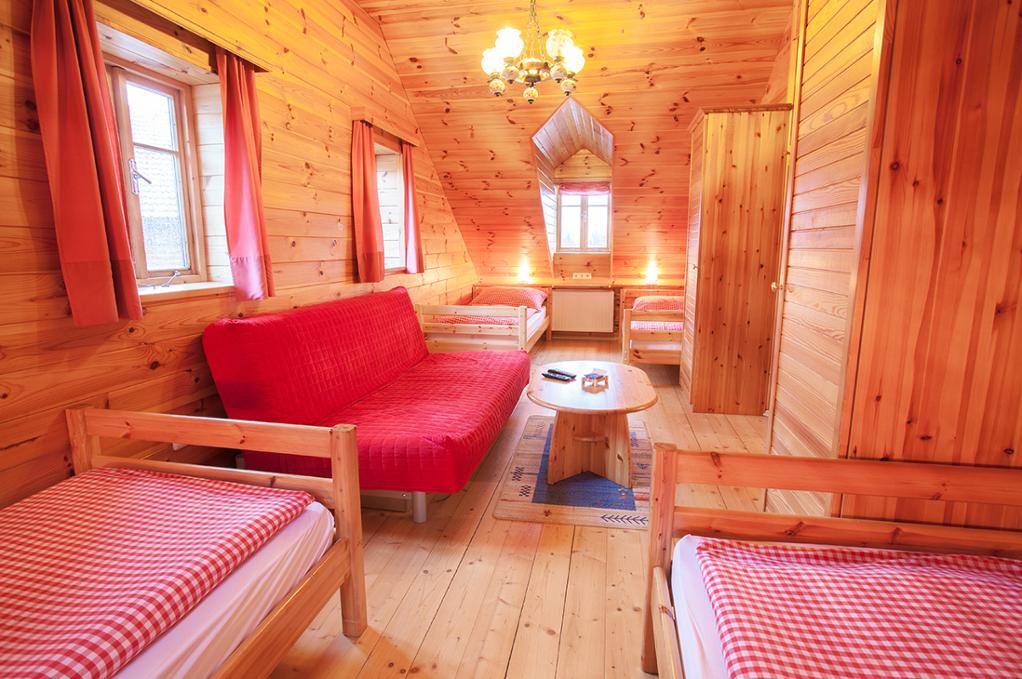 Die Naturzimmer in unserem Blockhaus sind mit Kiefernholz ausgestattet. Das Ambiente ist einfach & gemütlich. Das Gebäude bietet für bis zu 19 Personen Platz und ist die ideale Unterkunft für fröhliche Gruppen und Familien, die nicht auf Komfort verzichten möchten. (max. Kapazität im gesamten Gasthof bis zu 45 Personen)
