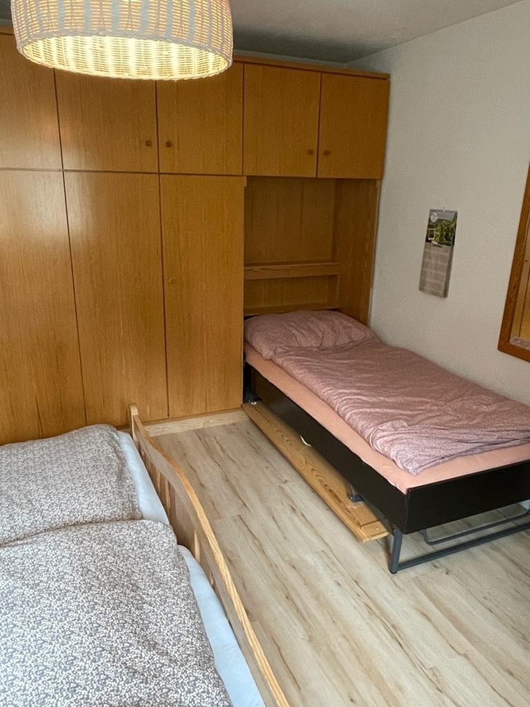 1 Schlafzimmer mit Doppelbett (2 Matratzen, 90x200), 1 Schrankbett.