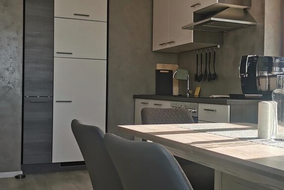 Die neue Küche verfügt über eine Kühl-/Gefrierkombination, Ofen, Geschirrspüler, Microwelle, Ceranfeld, Wasserkocher, Kaffeevollautomat (De Longi) inkl. Kaffeebohnen und Eierkocher.