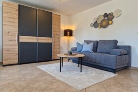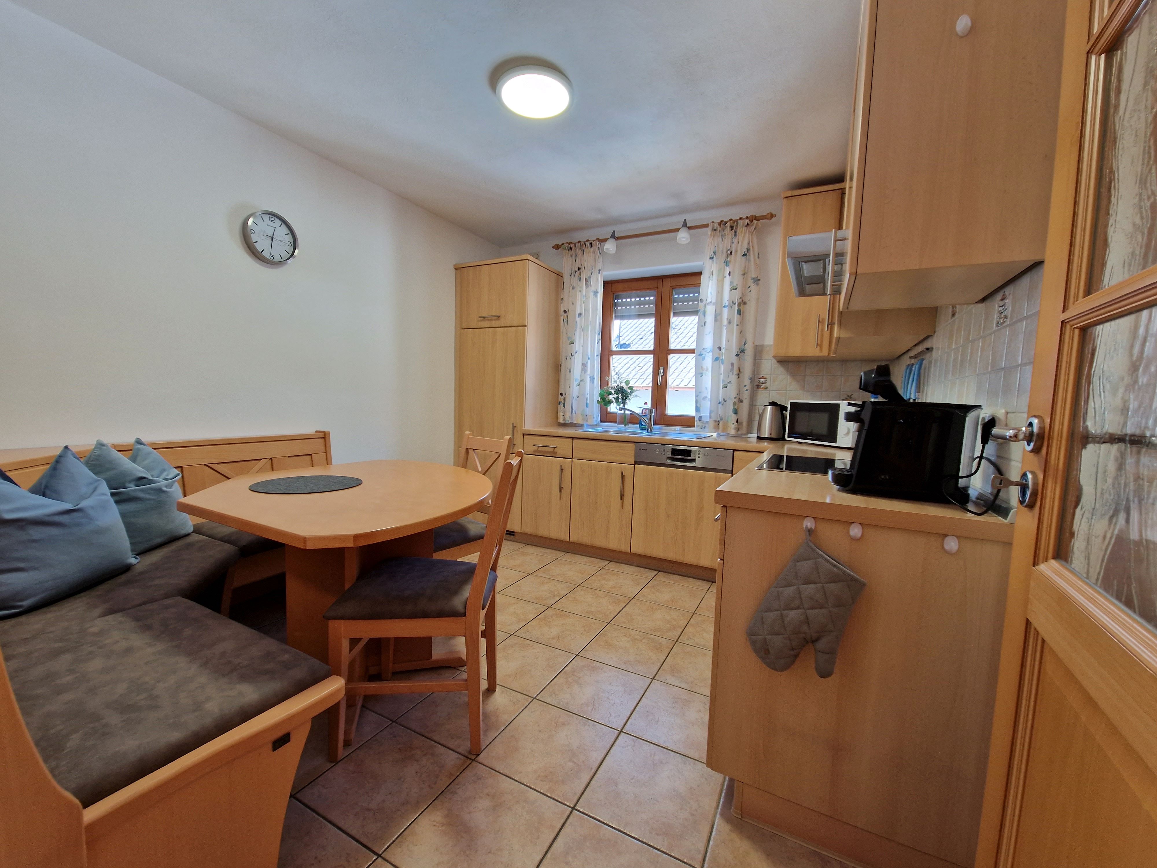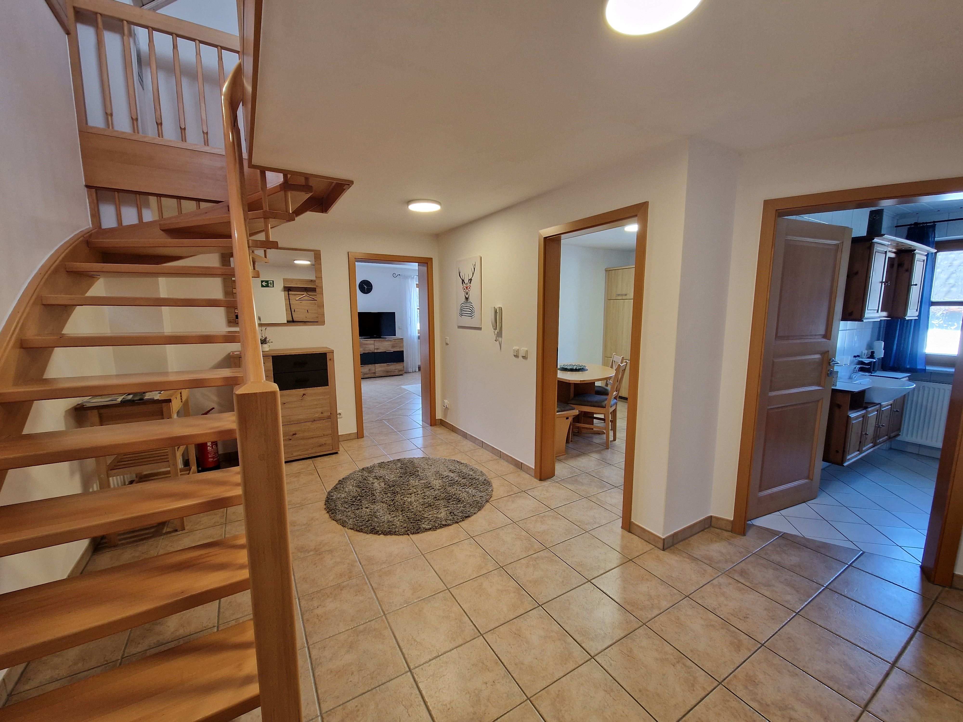 Unsere liebevoll eingerichtete Ferienwohnung mit Balkon bietet auf ca. 120m² Platz für bis zu sechs Personen und ist ideal für Familien, Paare oder Freunde, die zusammen reisen. Die Wohnung verfügt über ein Wohnzimmer mit einem bequemen Sofa, das zum Entspannen einlädt und einem Essbereich, der Platz für gemeinsame Mahlzeiten bietet. Flachbildfernseher und kostenloses WLAN sorgen für Unterhaltung und Konnektivität. Die voll ausgestattete Küche ermöglicht es Ihnen, Ihre Lieblingsgerichte auch im Urlaub zuzubereiten. Sie finden hier moderne Geräte wie einen Herd, einen Backofen, einen Kühlschrank, eine Mikrowelle und eine Kaffeemaschine. Geschirr, Besteck und Kochutensilien sind ebenfalls vorhanden. Die 3 Schlafzimmer sind jeweils mit einem komfortablen Doppelbett ausgestattet, das für erholsame Nächte sorgt. Die Betten der 2 Schlafzimmer im Obergeschoss können bei Bedarf getrennt werden. Ein weiteres Highlight sind die beiden modernen Badezimmer mit Dusche, WC und Föhn. Handtücher und Bettwäsche sind im Preis inbegriffen.
