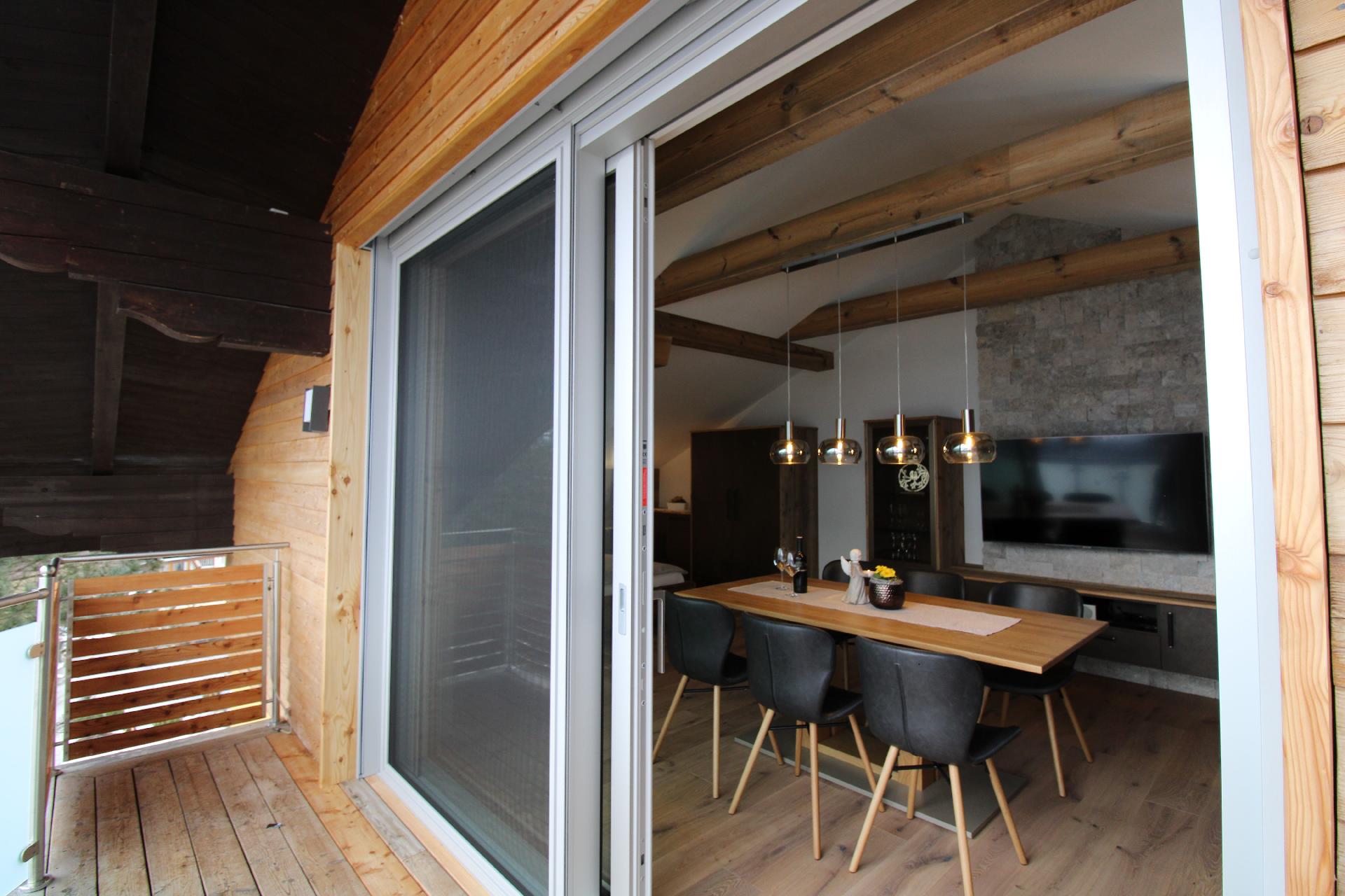 Luxus-Ferienwohnung für 2 bis 5 Personen mit Balkon im 3. Stock des Apartmenthauses Vergissmeinnicht - modern ausgestattet. Die Wohnung ist ca. 75qm groß und sehr geräumig ausgestattet (Totalrenovierung im Jahre 2020).Besonders der Ausblick vom Panorama-Wohnzimmerfenster auf die Berge ist atemberaubend.