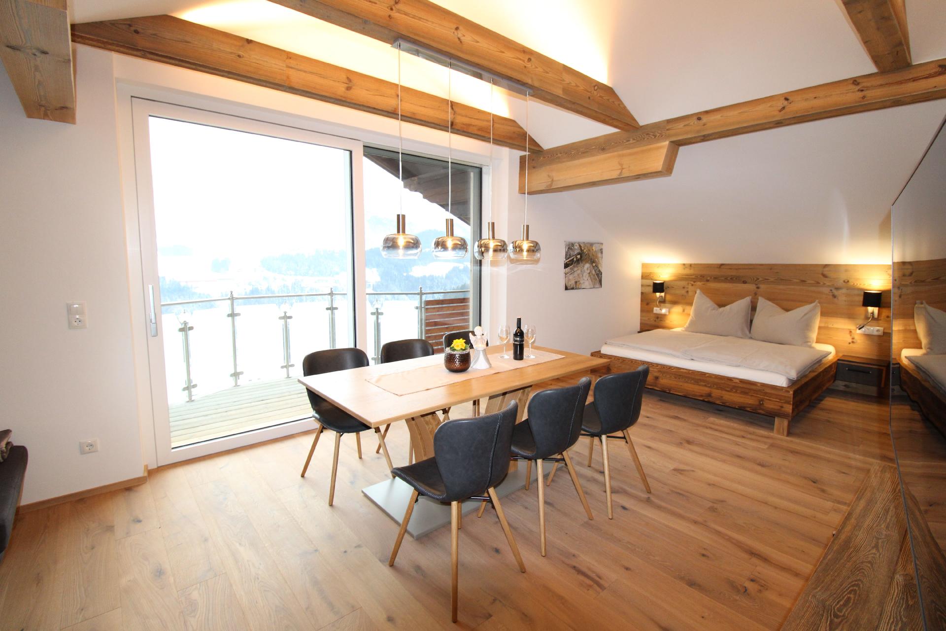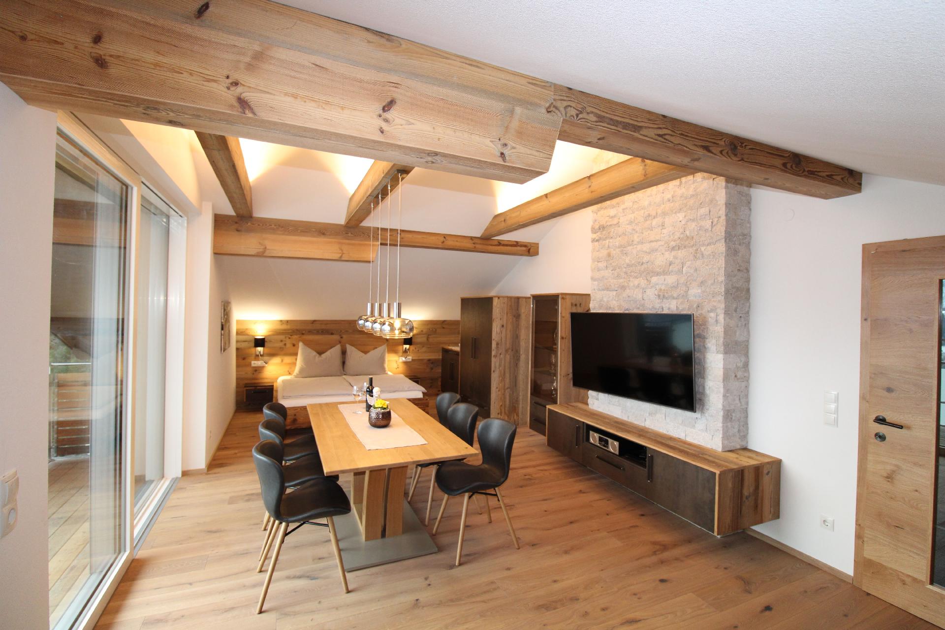 Unsere insgesamt drei Appartments sind ideal für Familien mit Kindern, aber auch für Paare und kleinere Gruppen. Im Sommer bietet sich besonders unser schöner Garten mit angeschlossener Gartenhütte an, der an lauen Abenden zum Grillen einlädt. Jedes unserer gemütlichen Appartments (von modern bis rustikal eingerichtet) verfügt über zwei getrennte Schlafzimmer, ein Wohn-Esszimmer, eine voll ausgestattete Küchenzeile (inkl. aller Geräte & Zubehör) und mindestens 1 Dusche bzw. 1 WC sowie einen Balkon mit herrlichem Ausblick auf die Berge (nur die Wohnung im EG hat keinen Balkon, wäre aber deshalb rollstuhlgeeignet).