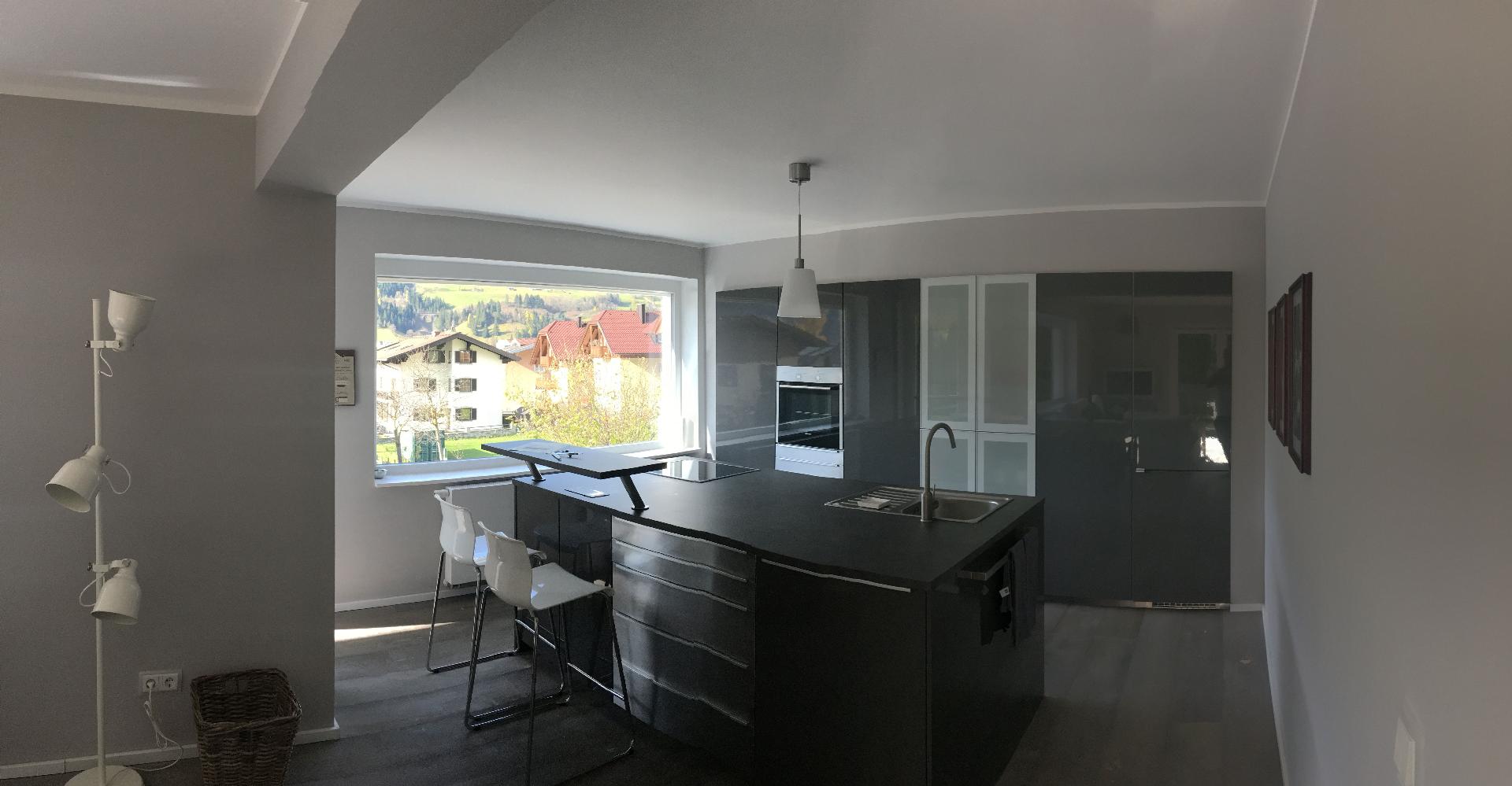 • Komplett ausgestattete Hochglanzküche mit Induktionskochfeld, Umluftbackofen und Spülmaschine