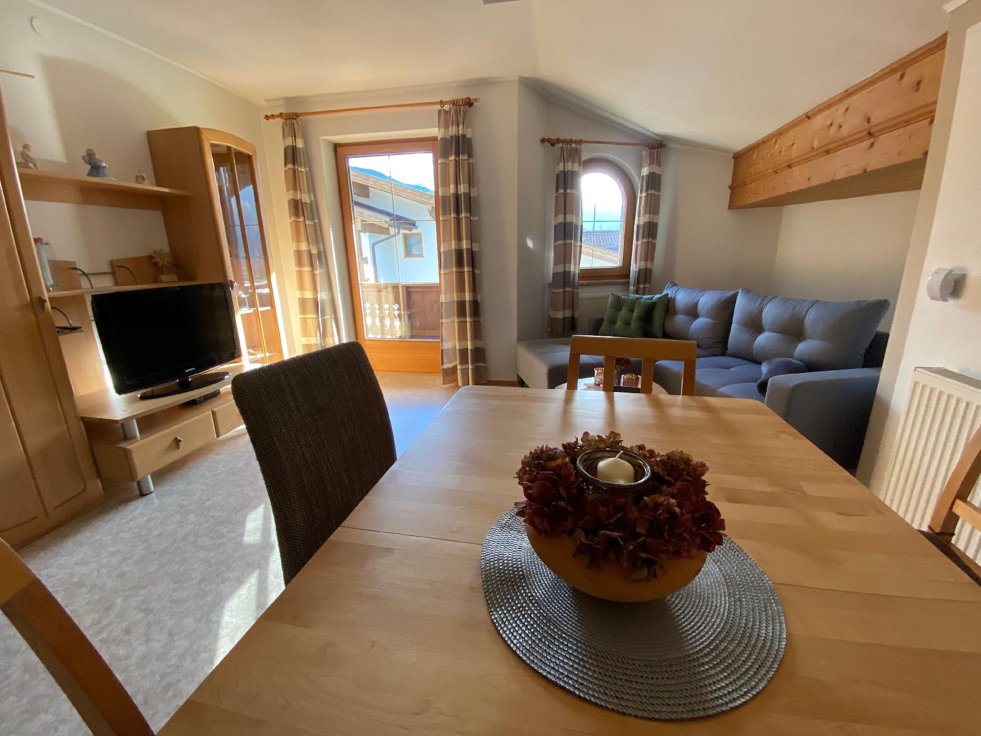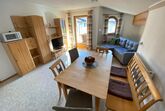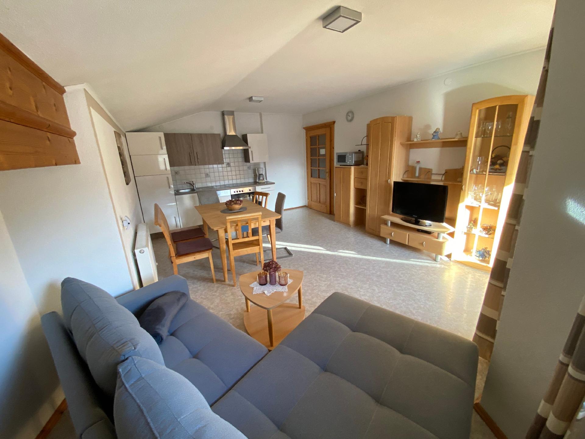 Innen besticht die Wohnung durch ihre gemütliche und einladende Atmosphäre. Hochwertige Möbel und liebevoll ausgewählte Details sorgen für ein heimisches Gefühl. Die voll ausgestattete Küche bietet alle Möglichkeiten, sich selbst zu versorgen, während der großzügige Wohnbereich mit seinem bequemen Sofa und dem Esstisch der ideale Ort für gesellige Stunden ist. Die ruhig gelegenen Schlafzimmer garantieren erholsame Nächte und die nötige Regeneration nach einem erlebnisreichen Tag.
