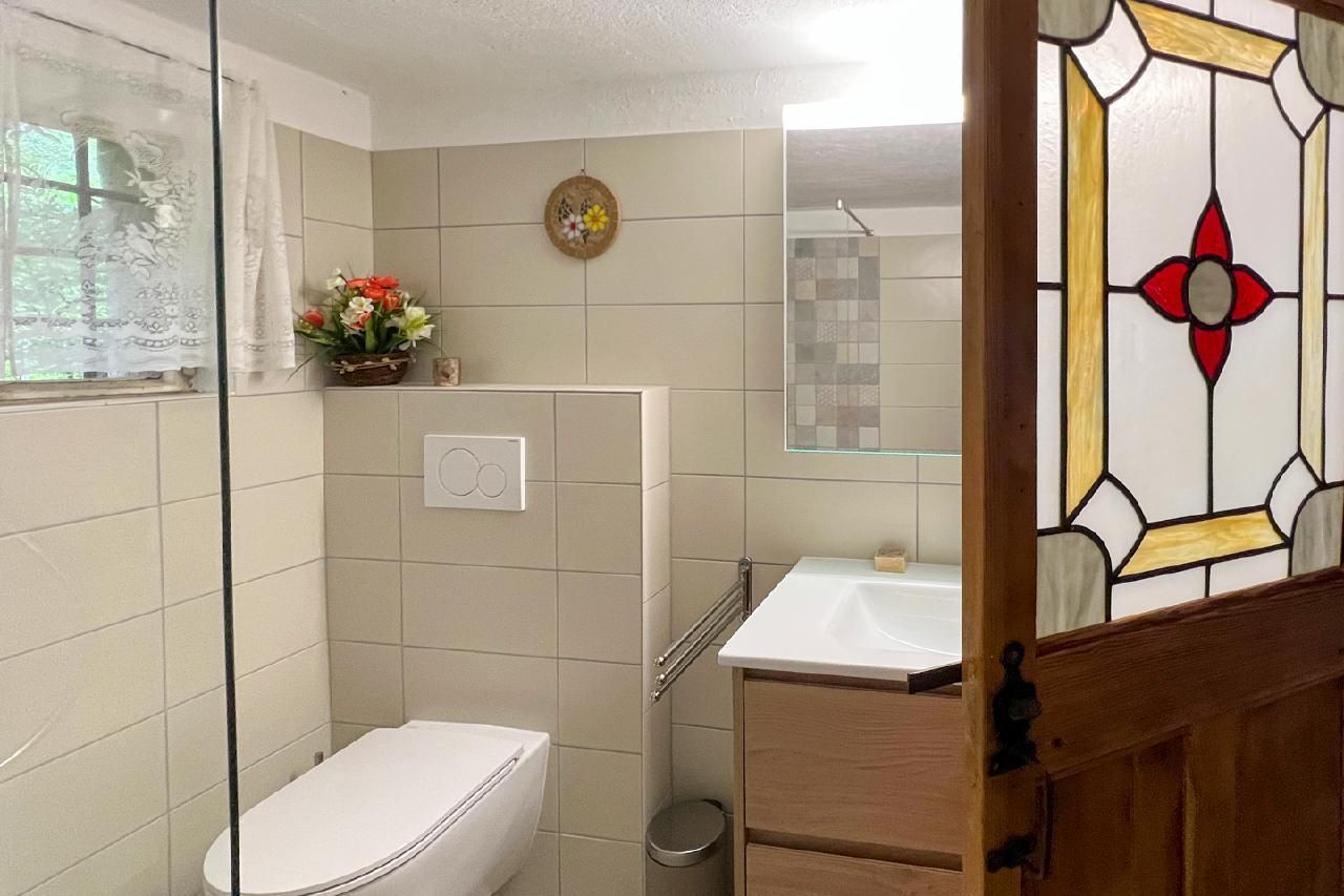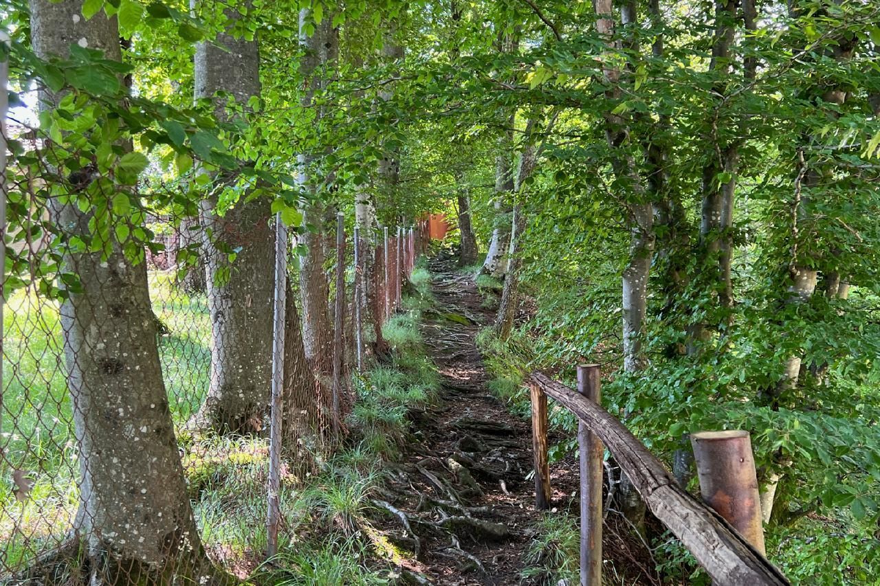 Das Grundstück liegt am Hang, und hinter dem Gartenzaun geht es steil bergab. Für kleine Kinder ist daher Vorsicht geboten. Auch die letzten fünf Minuten vom Parkplatz bis zum Haus führen über einen Fussweg, weshalb die Anreise nicht barrierefrei ist.