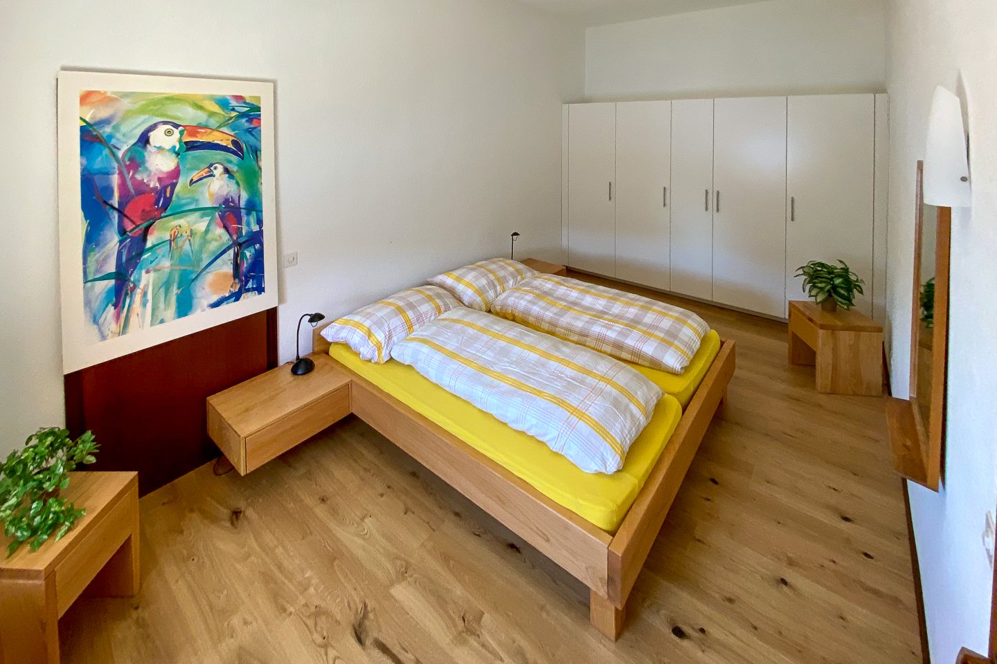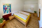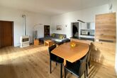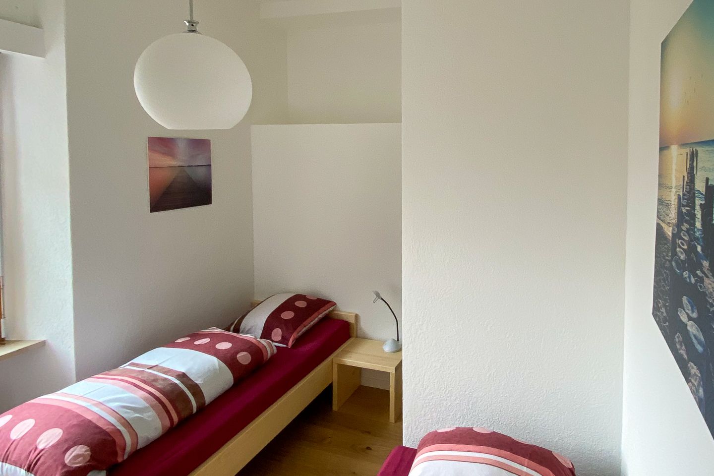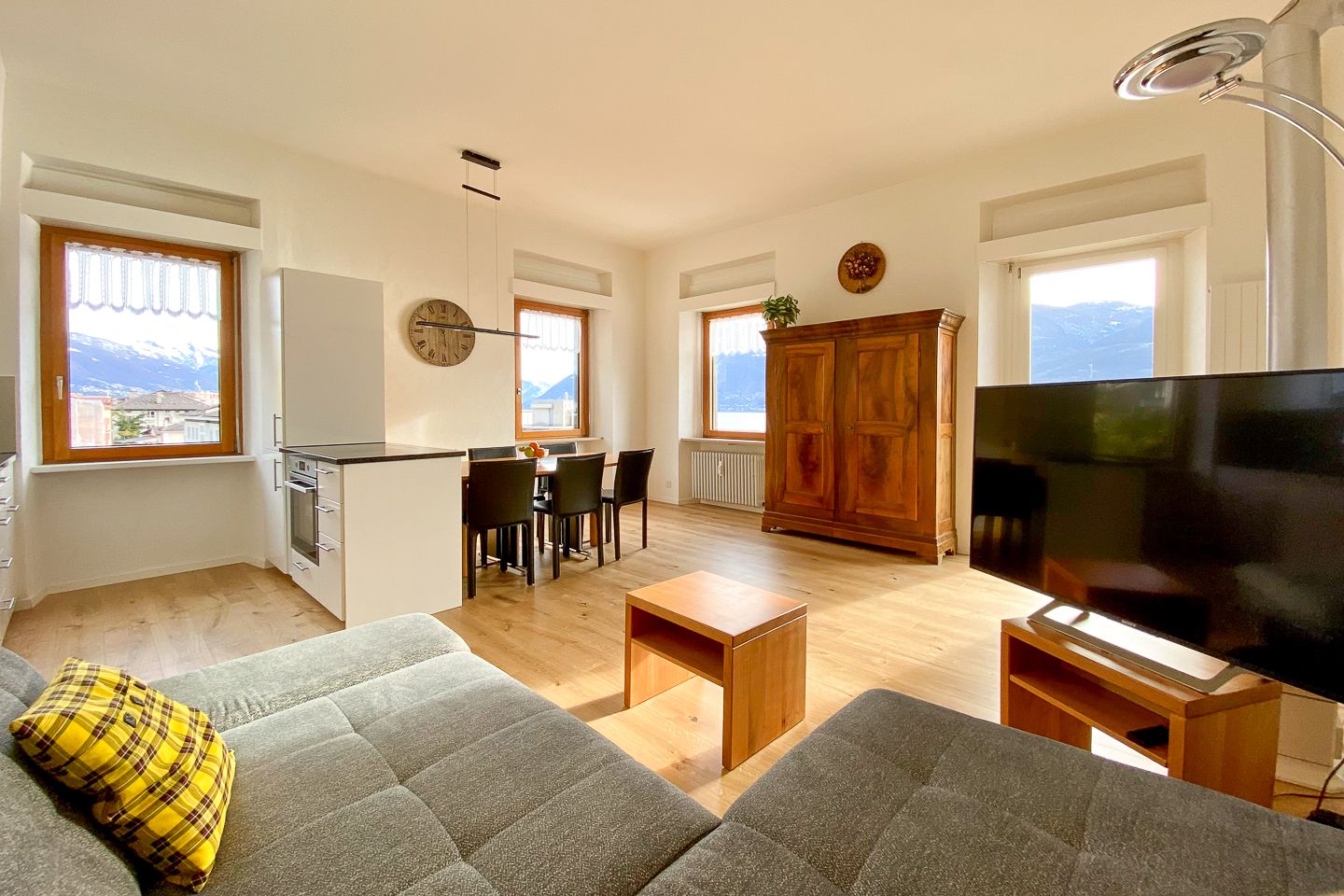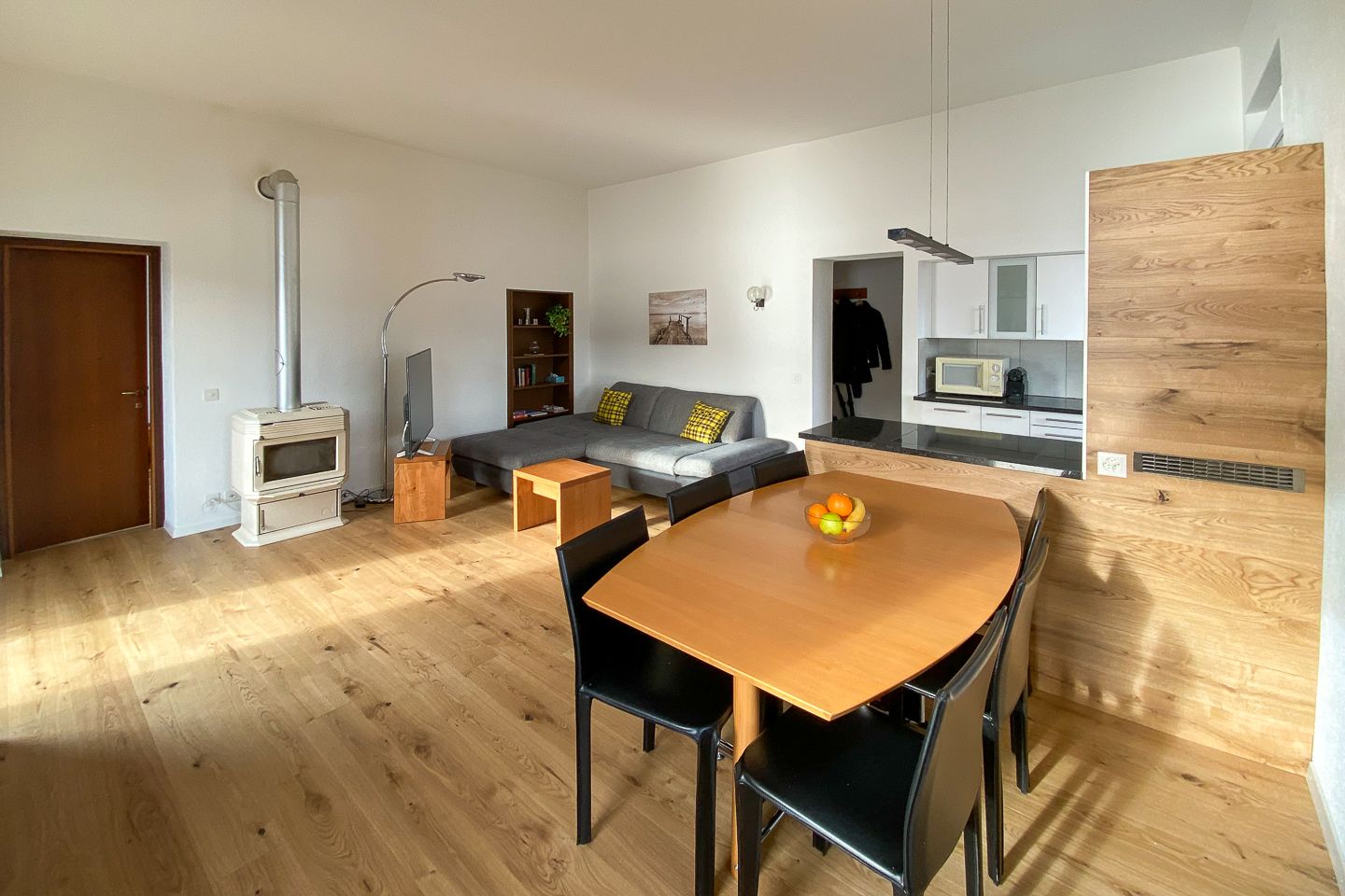 Die grosszügige Dreizimmerwohnung liegt im zweiten Stock und ist über Treppe oder Lift erreichbar. Ein geräumiges Wohnzimmer mit offener Küche sowie zwei separate Schlafzimmer bieten Platz für vier Personen.