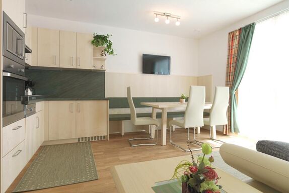 2 Doppelzimmer mit Doppelbetten, großer Wohnraum Couch, SAT TV, bestens ausgestatteter Küchenbereich mit Backrohr, Micro, Ceran Kochfeld, Eierkocher, Toaster, Teekocher, Kaffeemaschine uvm. Dusche, WC extra, Schi Schuhtrockner,Schidepot, kontrollierte Wohnraumlüftung, gratis W-LAN