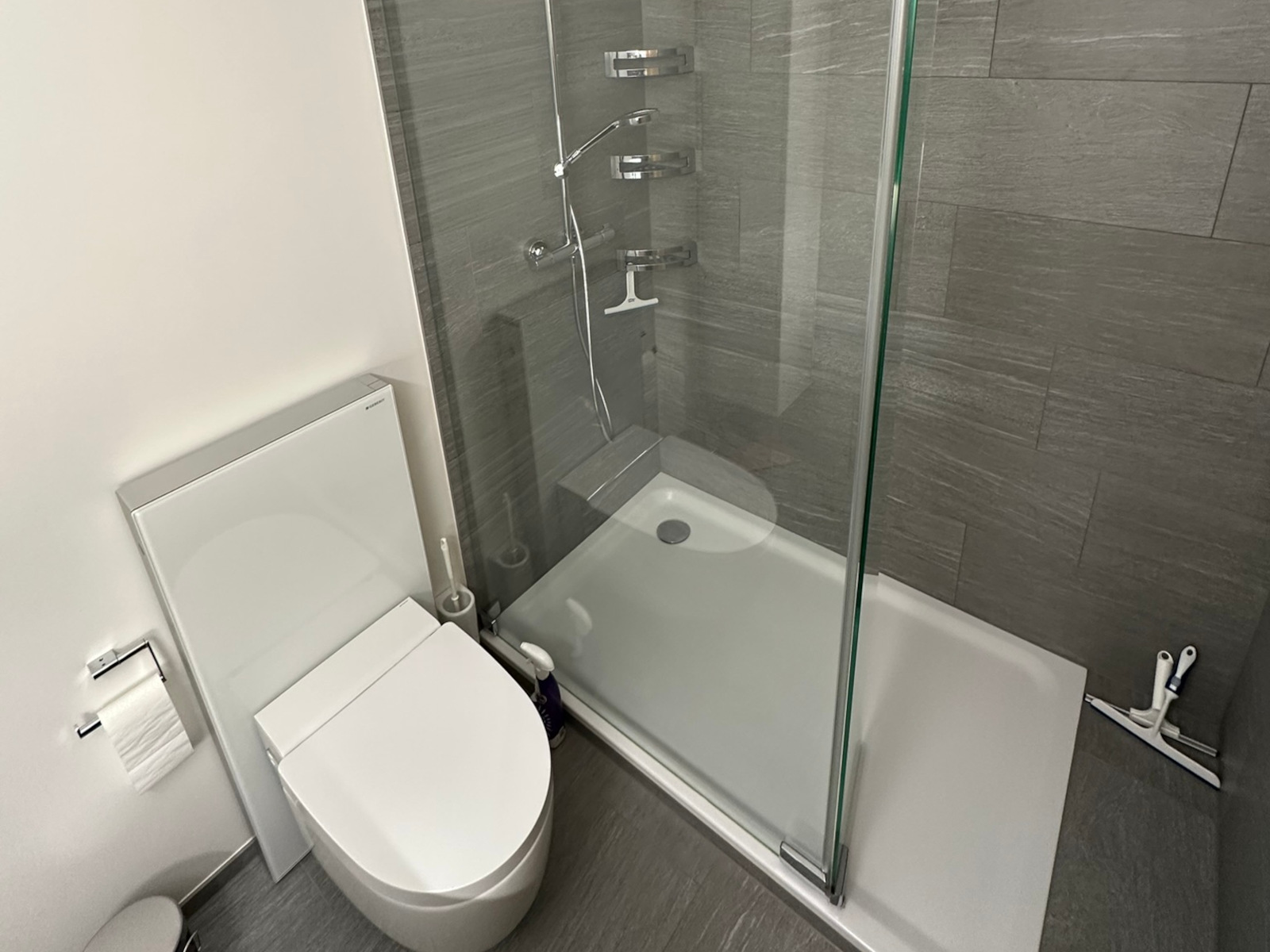 Die offene Küche ist gut ausgestattet mit Backofen, Geschirrspüler, Nespresso Kaffeemaschine, Geschirrspüler, Wasserkocher, & MikrowelleBadezimmer:
