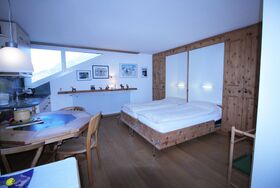 Kleines Studio in der 2.Etage gelegen, mit zwei einzelnen Betten, einem Esstisch, einer kleinen Kochnische sowie Bad/WC. Radio und CD Player, Fernseher und Telefon, kostenloses W-LAN sind ebenfalls in der Wohnung enthalten.