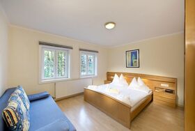 Die Villa Angelika verfügt über drei Appartements, die mit 35-110m² genügend Platz für 2-6 Personen bieten. Traditionell, aber doch stilvoll – die liebevoll eingerichteten, lichtdurchfluteten Wohnungen beinhalten eine voll ausgestattete Küche, sowie ein bzw. zwei Schlafzimmer, einen Wohnraum und einen Balkon zur Südseite, auf dem Sie Ihre Urlaubstage entspannt ausklingen lassen können. Zusätzlich finden Sie in den Appartements ein Radio, einen Sat-TV sowie einen Geschirrspüler vor. Appartement 1 besticht durch den großzügigen Garten und die Terrasse, wo Sie in Ihrem Sommerurlaub mit Familie Platz zum Toben finden.