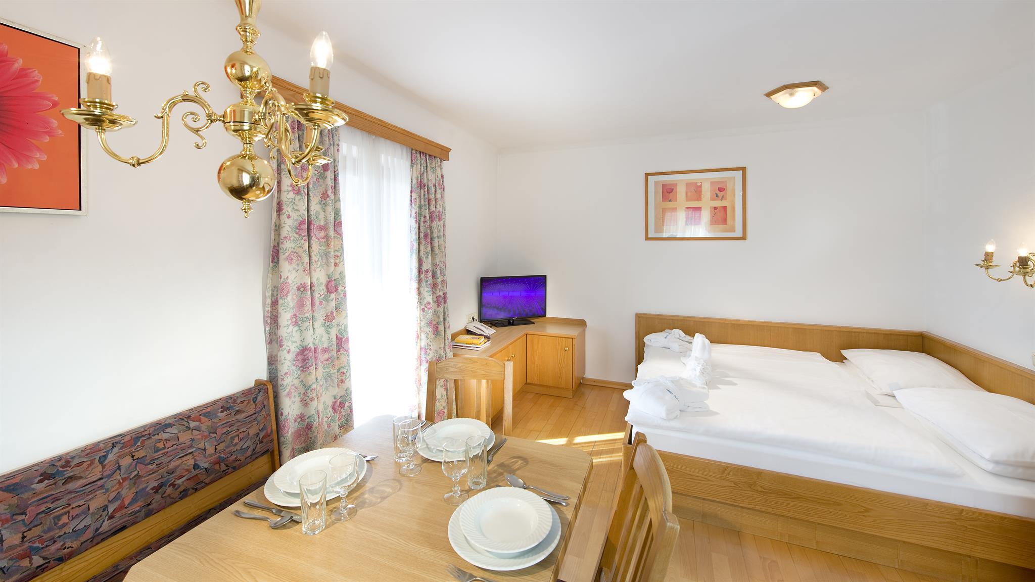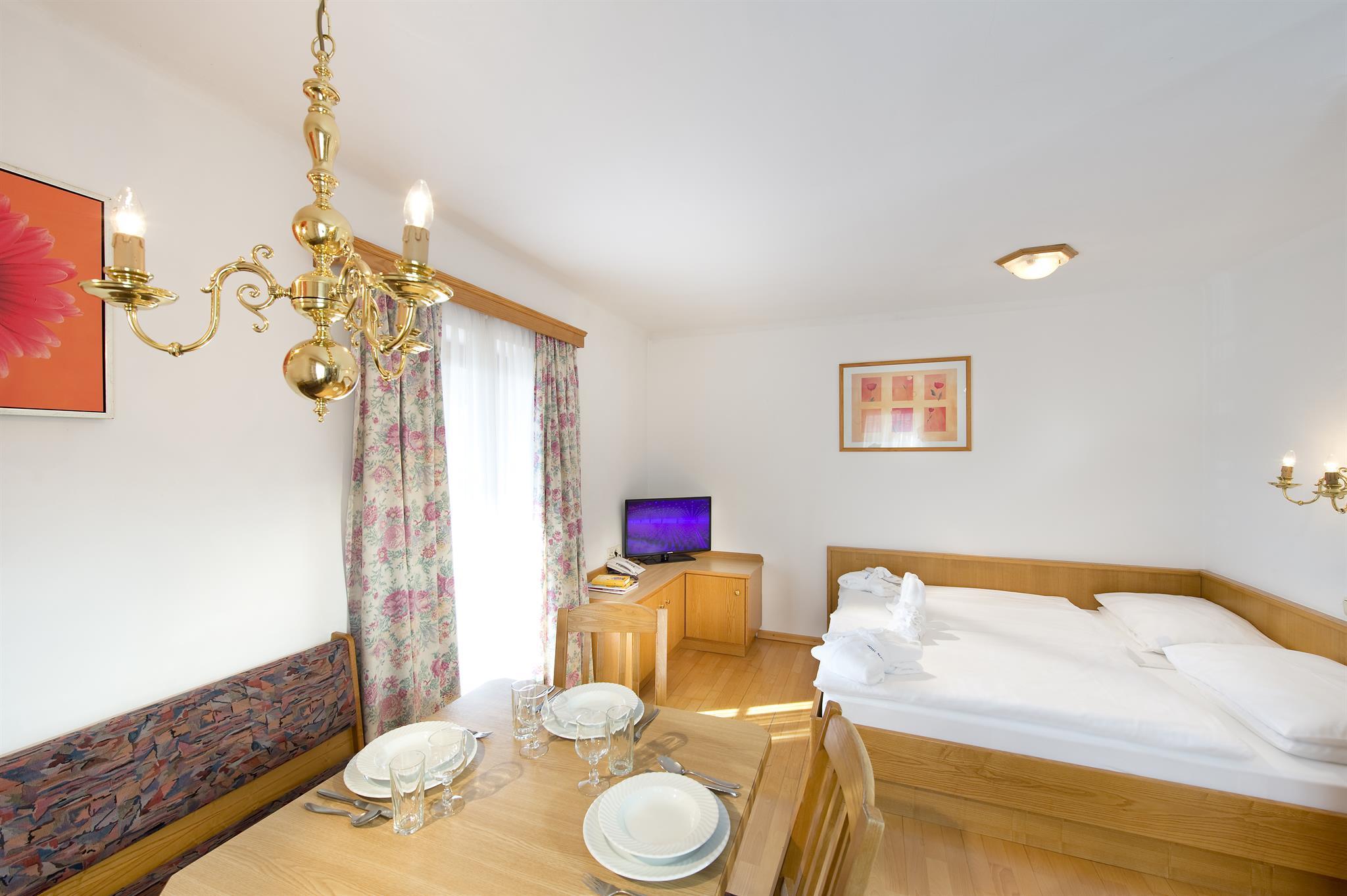 Um sich in Ihrem Urlaub rundum verwöhnen zu lassen, können Sie Ihr Frühstück und/oder Abendessen gerne im gegenüberliegenden Viersternehotel Alpina einnehmen. Auch der hauseigene Wellnessbereich kann während Ihres Aufenthaltes in Anspruch genommen werden.