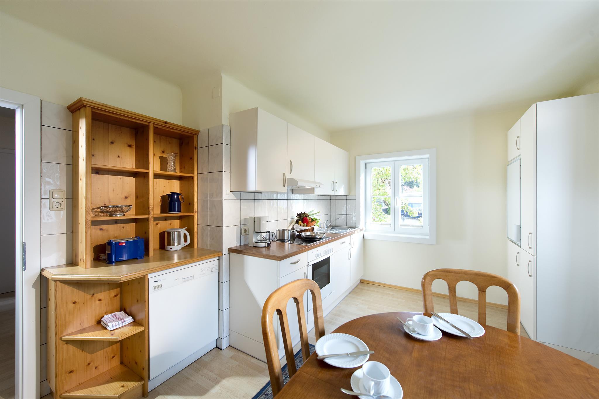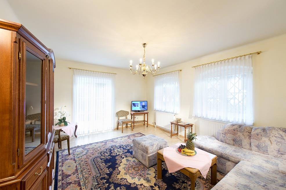 Aufteilung vom Appartement: Vorraum, Küche, Wohnzimmer inkl. Ausziehsofa, 2 Schlafzimmer (eines mit französischem Bett), Bad/WC, Radio, SAT-Farb-TV, Selbstwähltelefon. Geschirrspüler und Terrasse zur Südseite, großer Garten mit Liegewiese