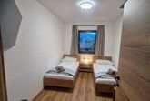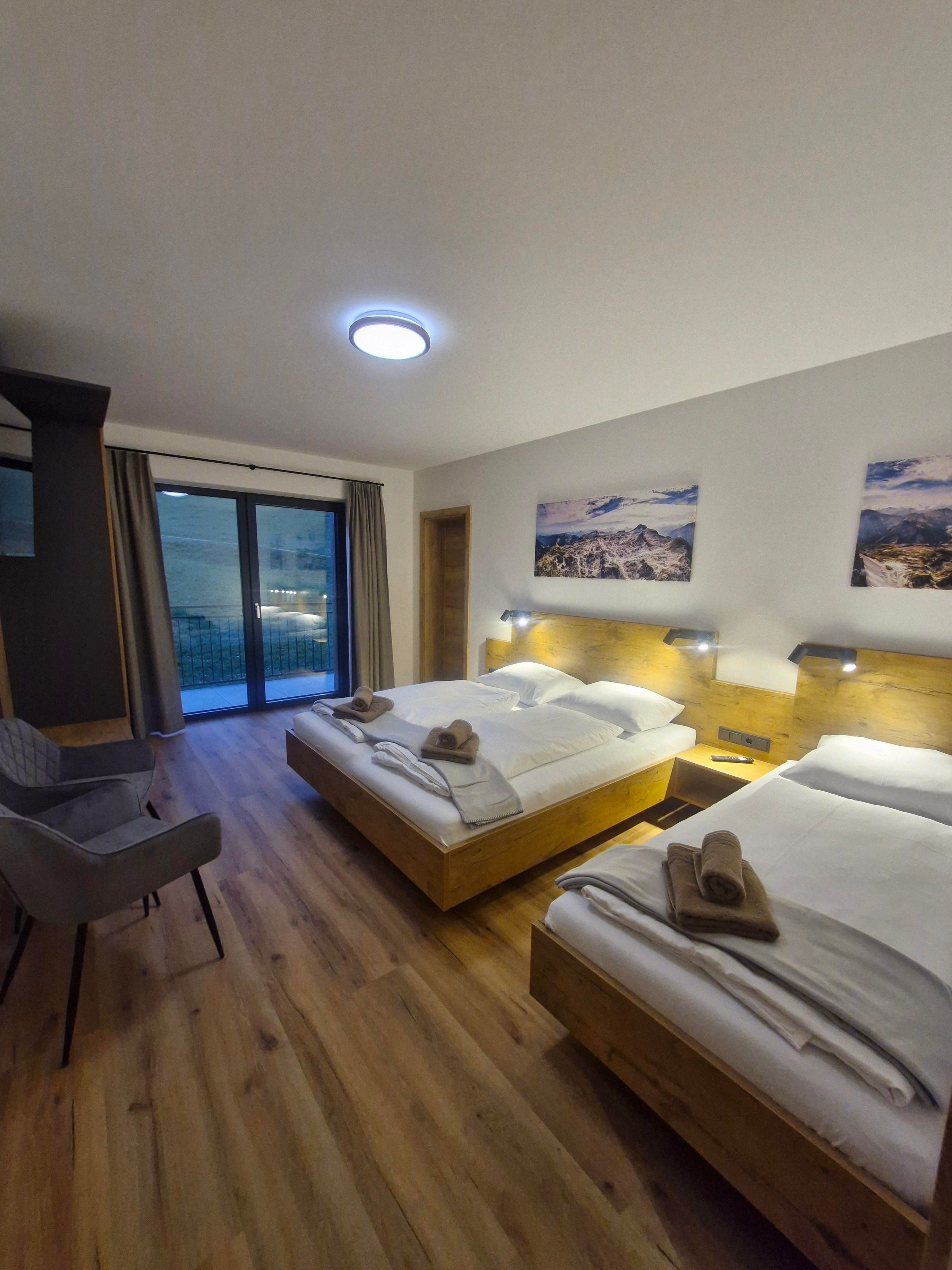 Das NEUE Appartement verfügt über vier separate Schlafzimmer, 1 Wohnschlafraum, sowie drei Badezimmer, 1 seperates WC. Der geräumige Wohnbereich ist mit einer gemütlichen Couch, einem Esstisch und einer voll ausgestatteten Küche ausgestattet.