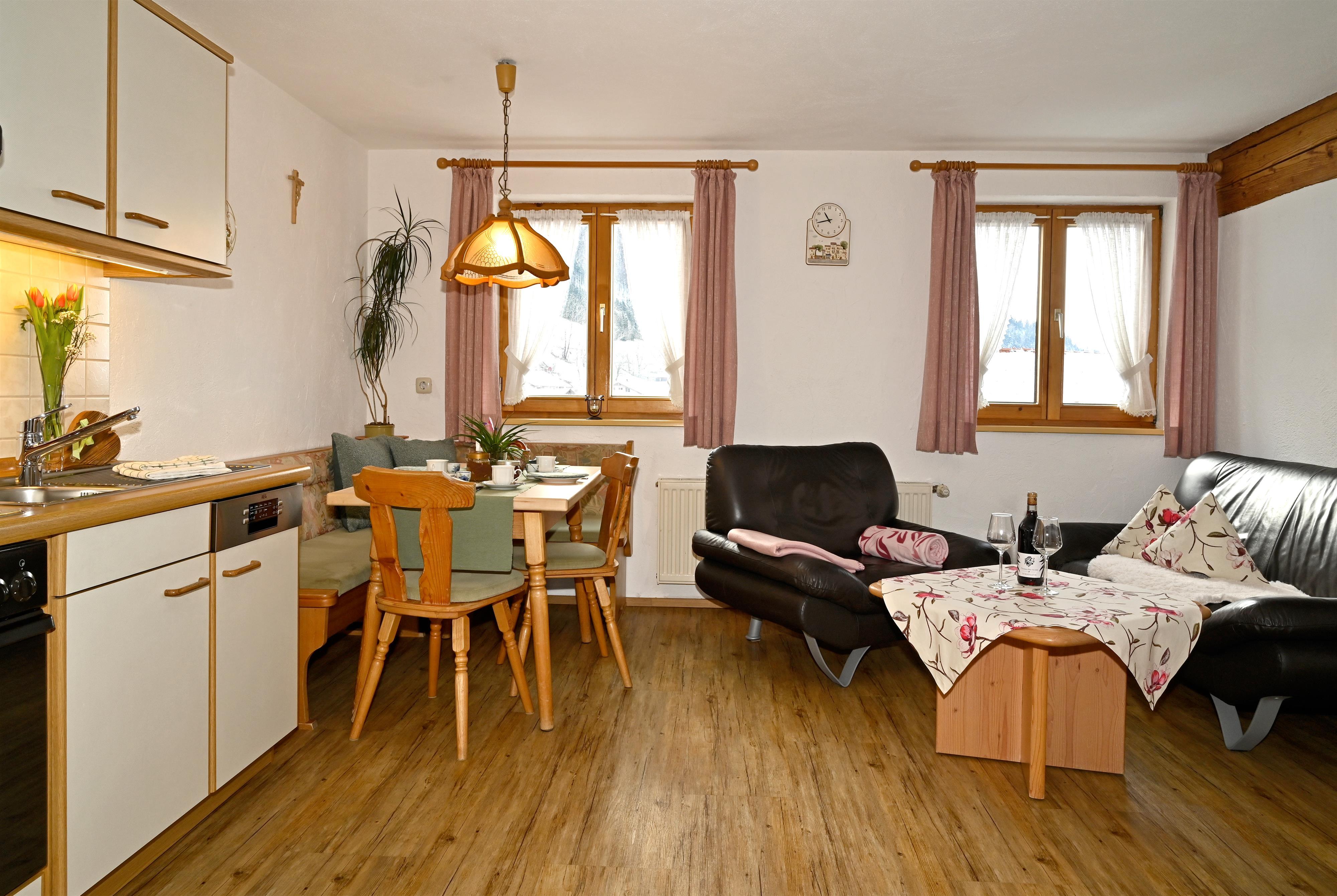 Genießen Sie Ihren Aufenthalt in unserer gemütlichen 3-Sterne-Ferienwohnung Mittag mit herrlichem Bergblick aus den Fenstern. Auf großzügigen 54 m² bietet sie Platz für 2 bis 5 Personen und ist perfekt für Familien, Paare oder kleine Gruppen, die die Schönheit der Allgäuer Alpen erleben möchten.