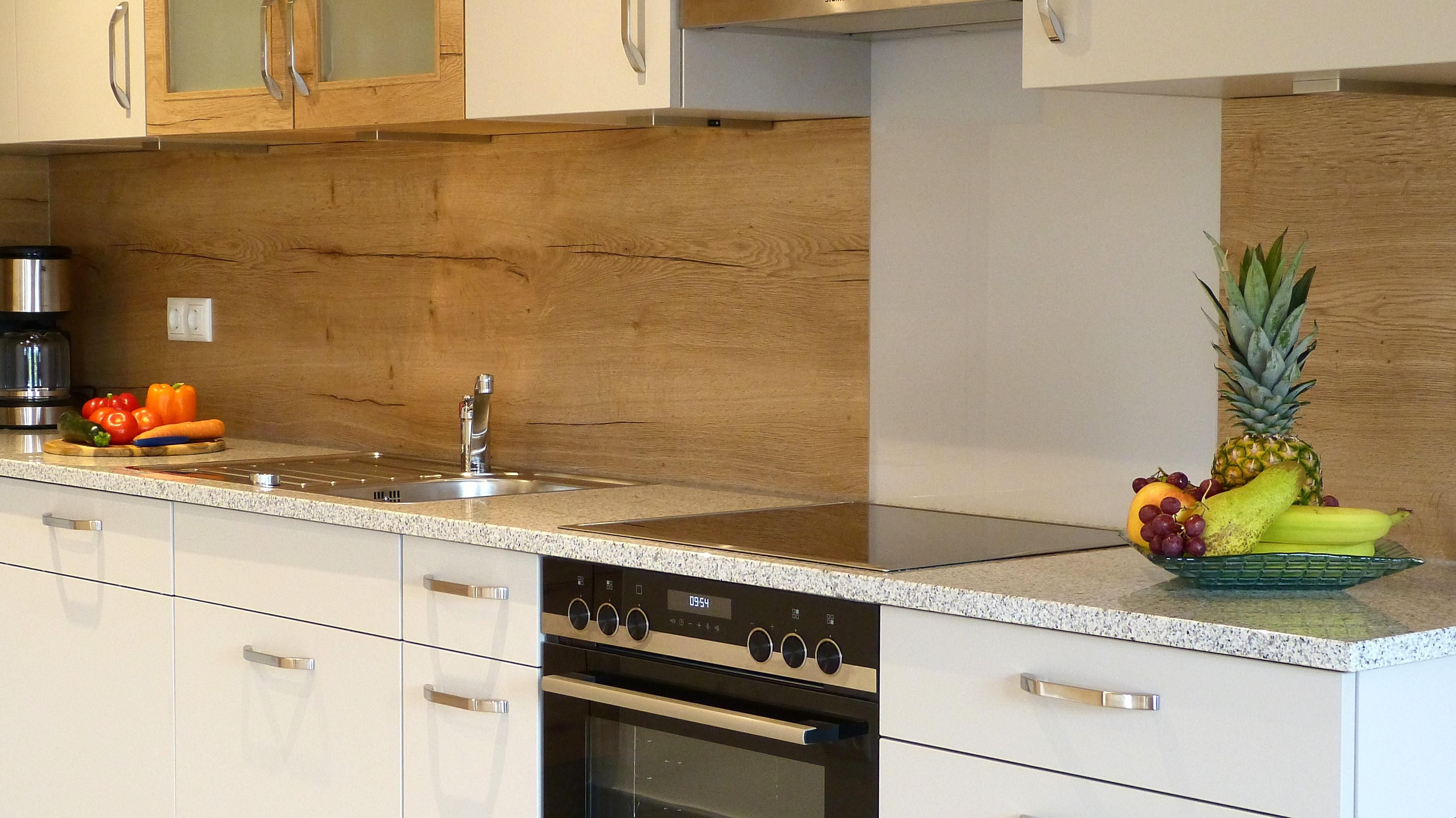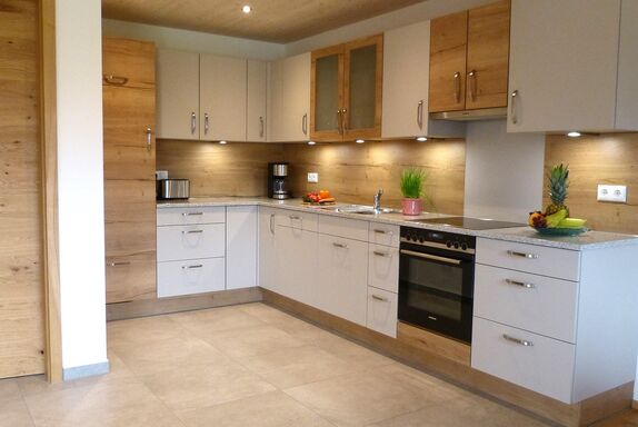 • voll ausgestattete Küche mit Herd und Backofen, Geschirrspüler, Kühlschrank,