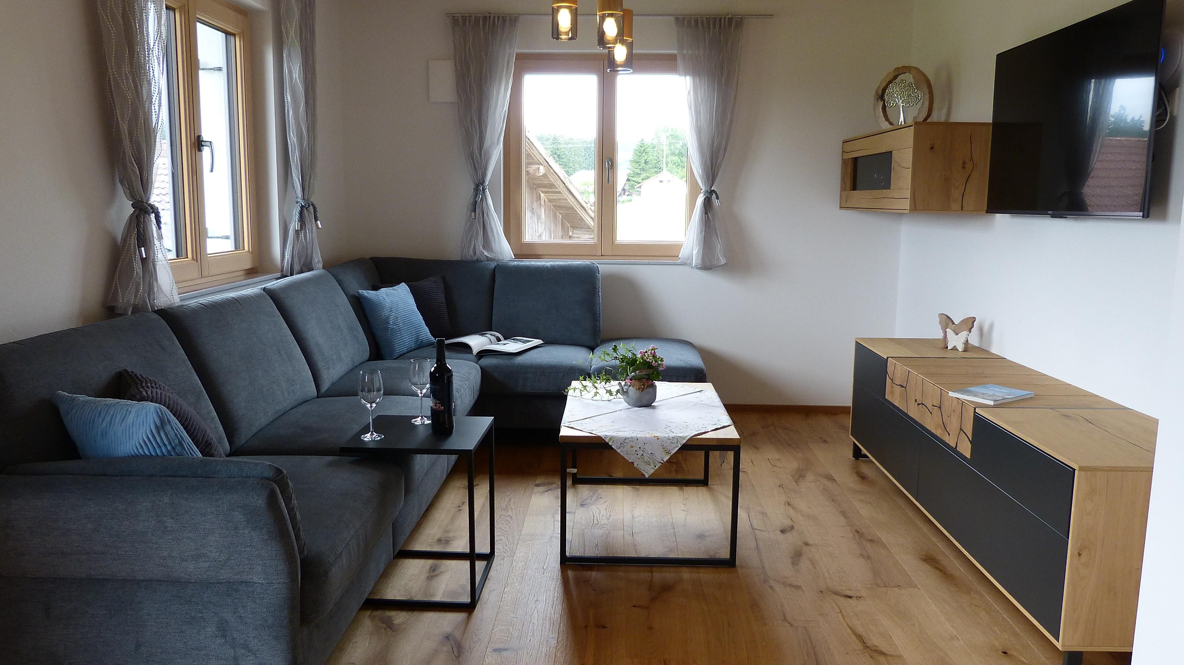 Unser neu erbautes Landhaus auf 820 m Meereshöhe in Alleinlage vor dem kleinen Dorf Akams bietet drei hochwertige, mit Liebe ausgestattete Ferienwohnungen. Die Möbel hat ein Allgäuer Schreiner in Handarbeit gefertigt. Unsere Highlights sind der Rundumblick in die Allgäuer Alpen und die freie Lage an einem Südhang, die dir Sonne vom Morgen bis zum Abend bietet.