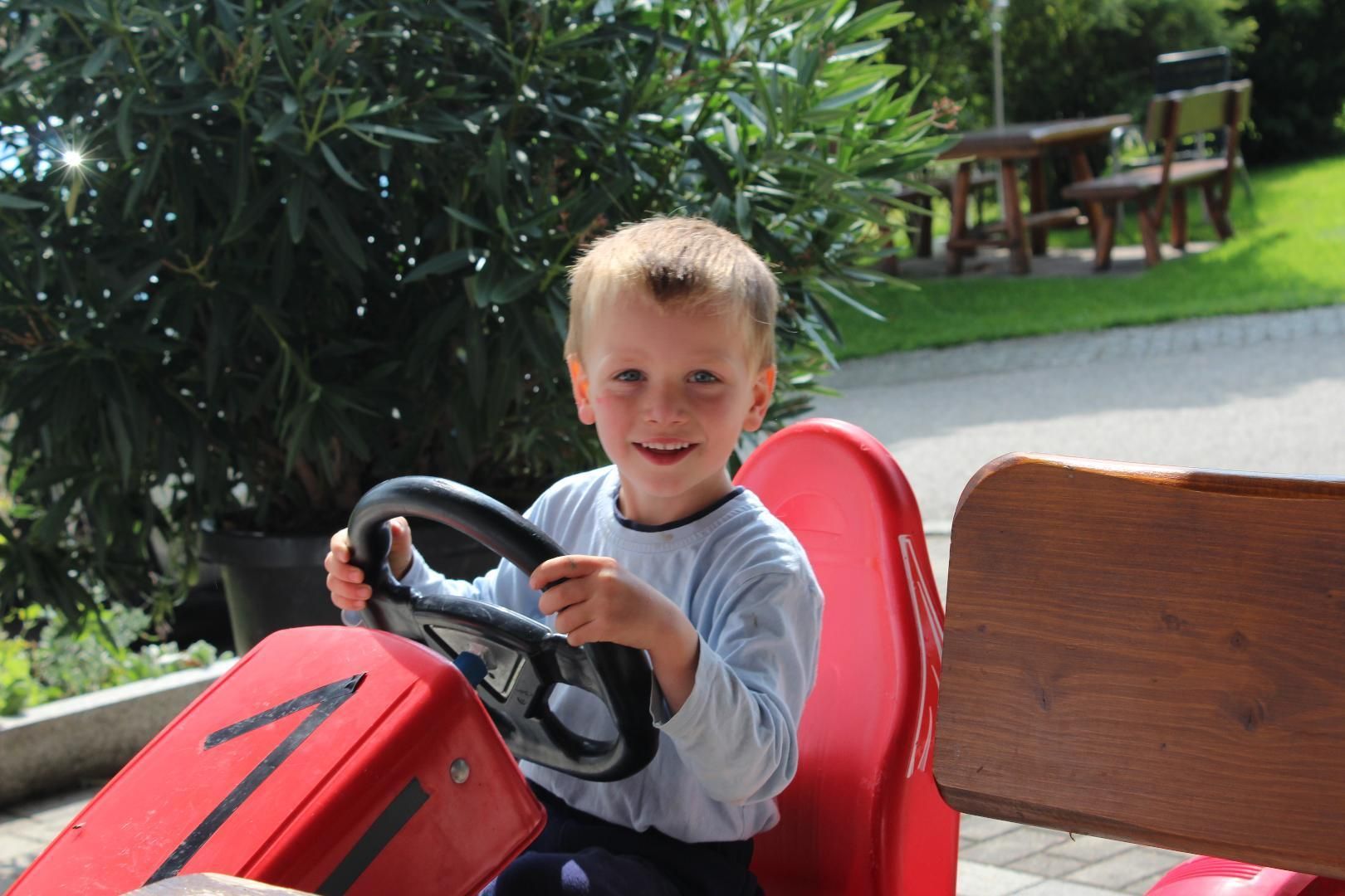 Für die Kinder gibt es am Landhaus und beim Bauernhof einen eigenen kleinen Spielplatz mit Schaukel, Sandkasten und Trampolin, auch unser Fuhrpark mit Bobbycar, Laufrad, Roller und Kettcar steht zu eurer Verfügung. Eine Tischtennisplatte ist auf unserem Bauernhof vorhanden. Wenn du einen großen Spielplatz mit diversen Spielgeräten und Sitzplätzen besuchen möchtest: Die gibt es in den Ortsmitten von Akams und Bräunlings.