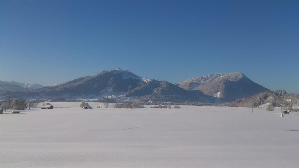Der Blick aus unserem ganz in blau gehaltenen Zimmer -Rottachberg -geht mit 2 großen Fenstern direkt in unseren kleinen Ort mit 2 landwirtschaftlichen Betrieben, das 3. Fenster richtet seinen Ausblick auf den Hof und auf unseren Hausberg. Das Zimmer ist ein Doppelzimmer in das wir jedoch noch ein Kinderbett oder Zustellbett stellen können. Die Ausstattung des Zimmers ist in hellem Fichtenholz gehalten und hat ein 2Sitzer Ledersofa in der Schmöckerecke am Fenster.