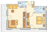 Das Appartement verfügt über 1 Doppelzimmer mit Dusche/WC, voll ausgestattete Wohnküche (Induktionsherd, Mikrowelle, Backrohr, Geschirrspüler, Kühlschrank mit Gefrierfach, Kaffeemaschine, Toaster, Wasserkocher), Vorraum mit Garderobe, Balkon. Das Appartement mit 45 m² bietet folgende Annehmlichkeiten.