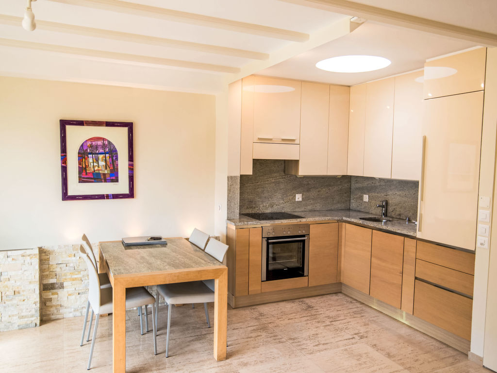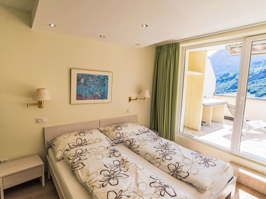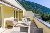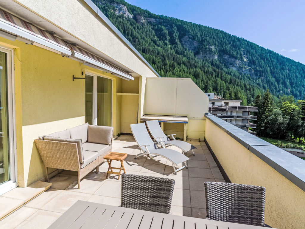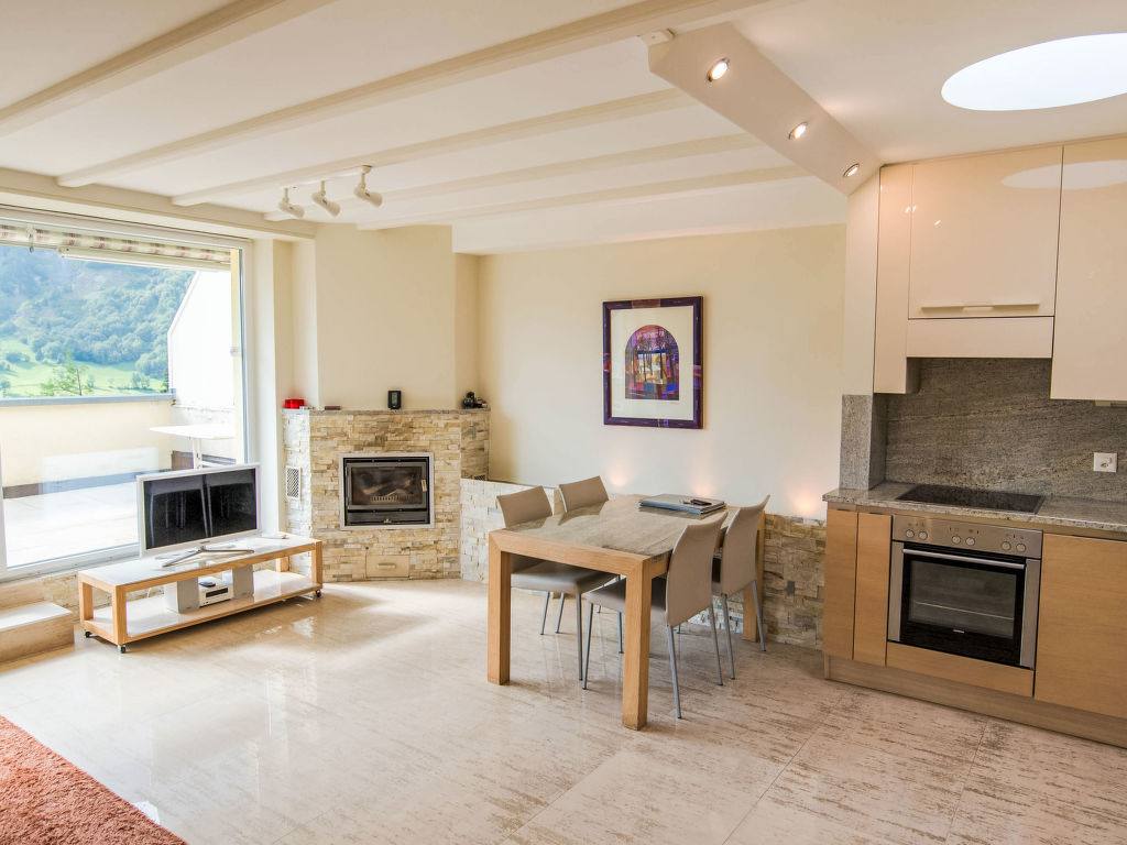 Cristal 67, 2-Zimmer-Attikawohnung 52 m2 im 5. Stock. Renoviert, schön und gemütlich eingerichtet: Wohn-/Esszimmer mit 1 Diwanbett, offenem Kamin, Esstisch und Kabel-TV. Ausgang zur Terrasse. 1 Doppelzimmer mit 1 Doppelbett (1 x 90 cm, Länge 200 cm). Ausgang zur Terrasse. Offene Küche (Backofen, Geschirrspüler, 4 Glaskeramikplatten, elektrische Kaffeemaschine). Dusche/WC. Parkettboden. Grosse Terrasse. Terrassenmöbel. Panoramasicht auf die Berge und die Ortschaft. Zur Verfügung: Haartrockner. Internet (Wireless LAN, gratis). Bitte beachten: Nichtraucher-Unterkunft.
