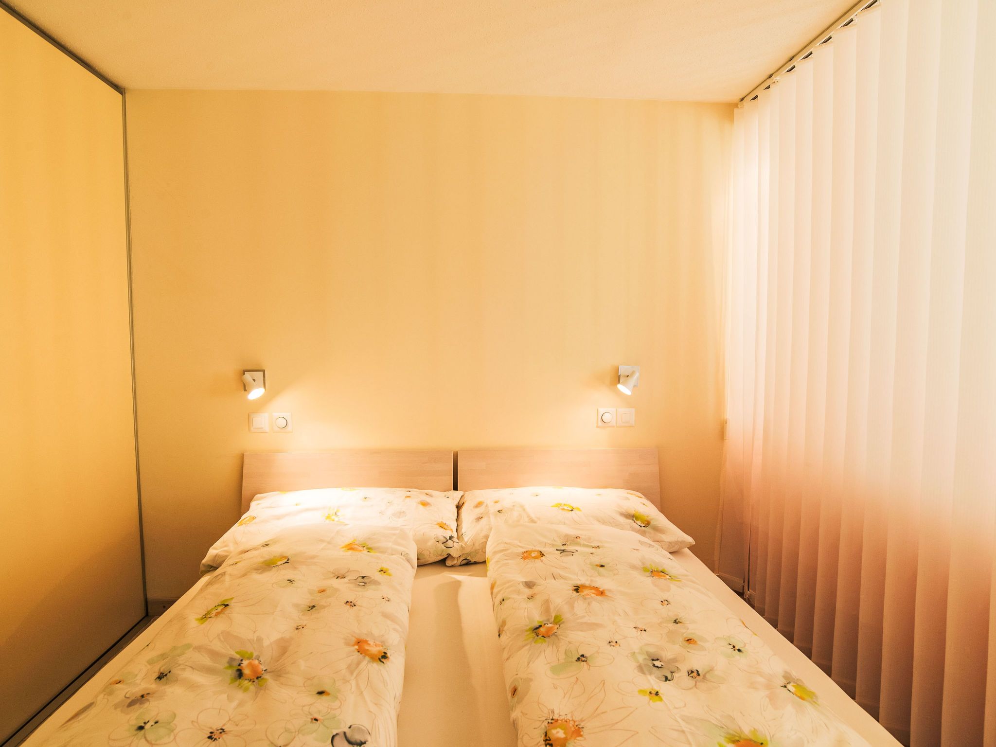 Cristal 38, 1-Zimmer-Wohnung 35 m2 im 1. Stock. Renoviert, schön und gemütlich eingerichtet: Wohn-/Schlafzimmer mit 1 Diwanbett und 1 Doppelbett (2 x 90 cm, Länge 200 cm), Esstisch und Kabel-TV. Ausgang zum Balkon. Offene Küche (Backofen, Geschirrspüler, 4 Glaskeramikplatten, elektrische Kaffeemaschine). Dusche/WC. Parkettboden. Grosser Balkon. Balkonmöbel. Panoramasicht auf die Berge. Zur Verfügung: Haartrockner. Internet (Wireless LAN, gratis). Bitte beachten: Nichtraucher-Unterkunft.