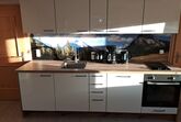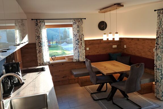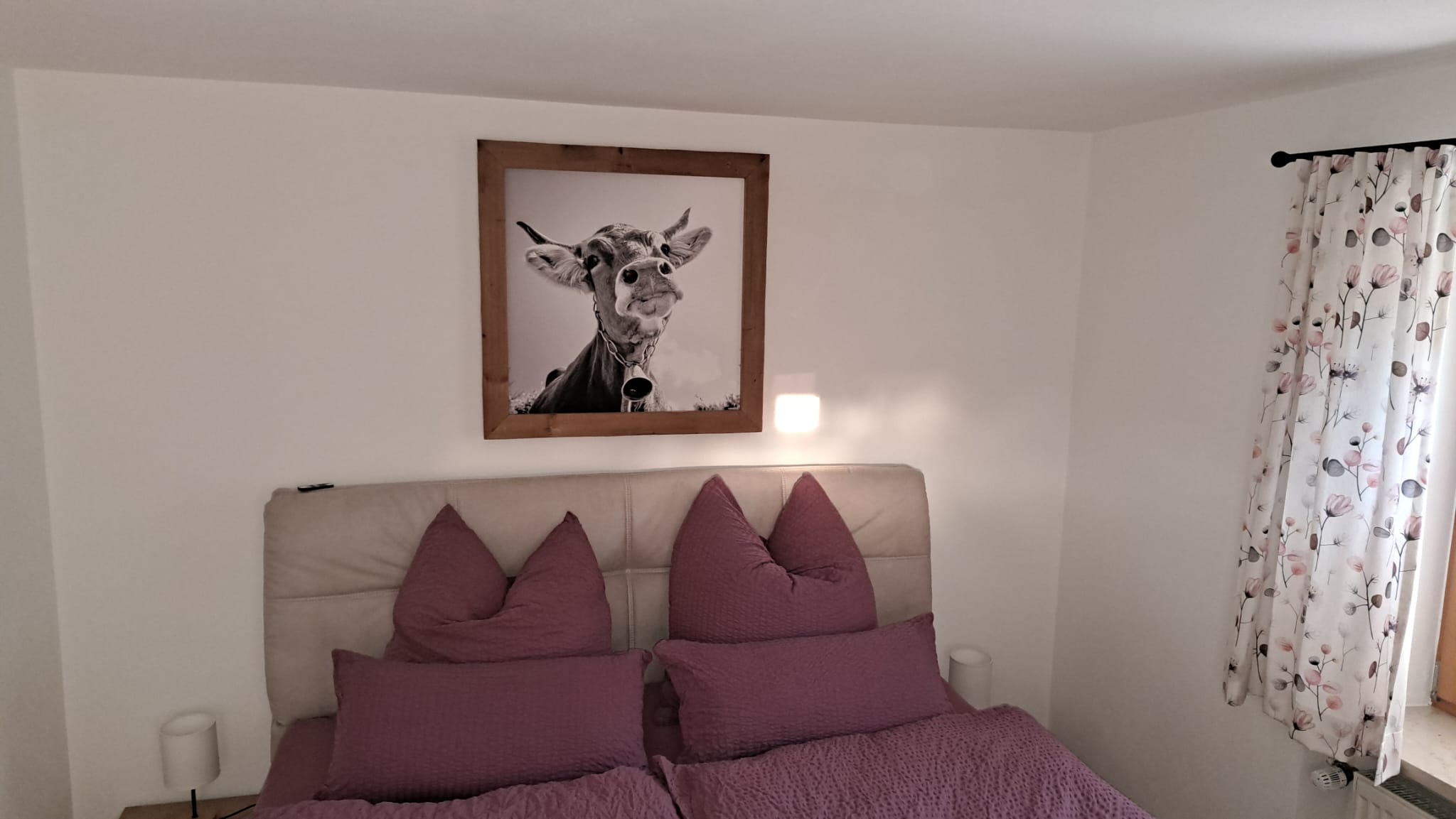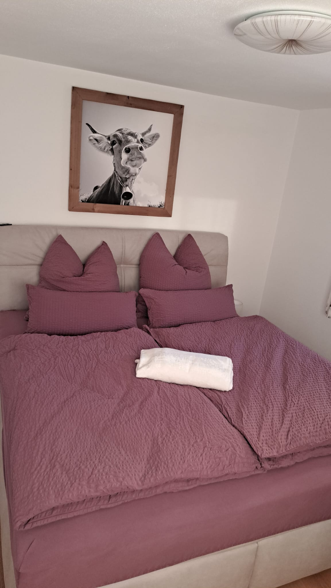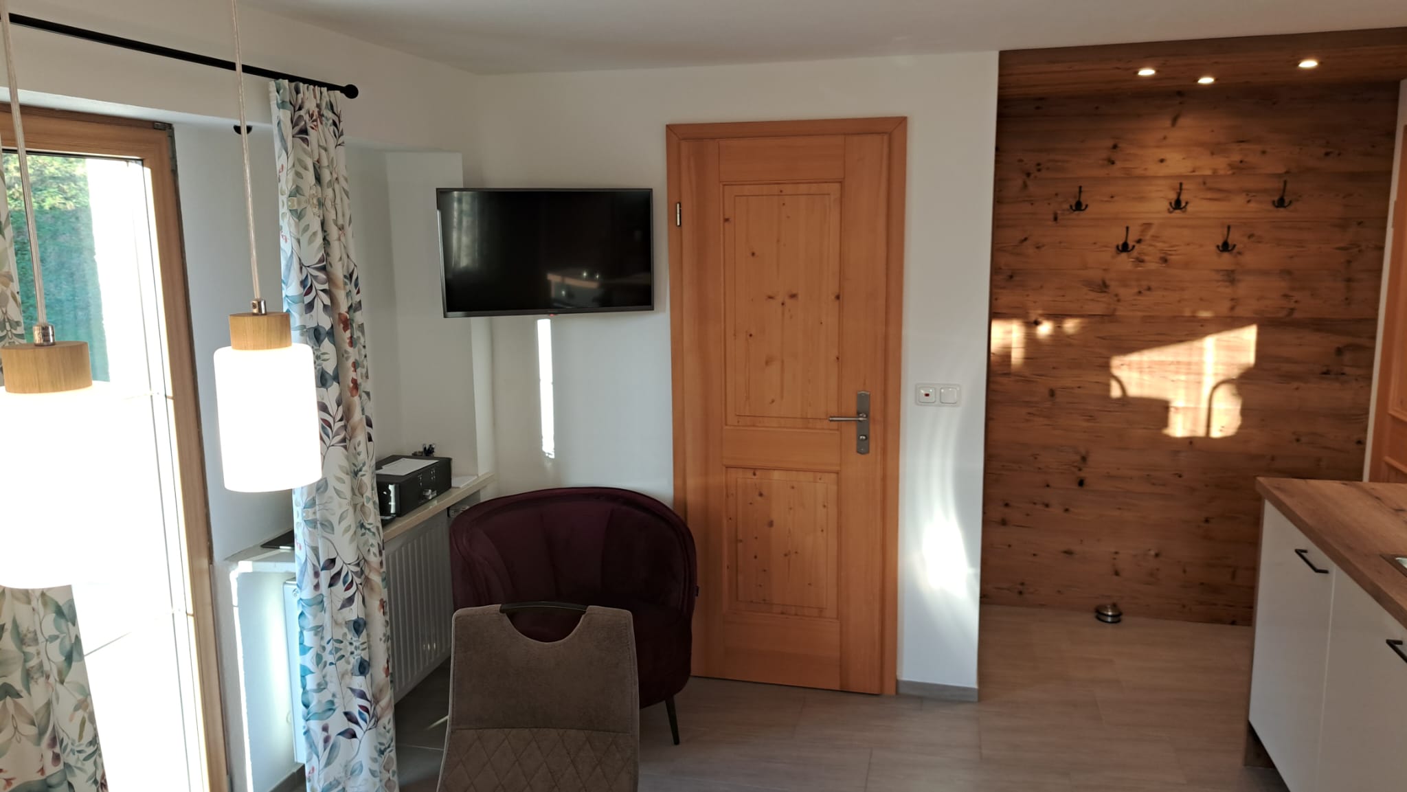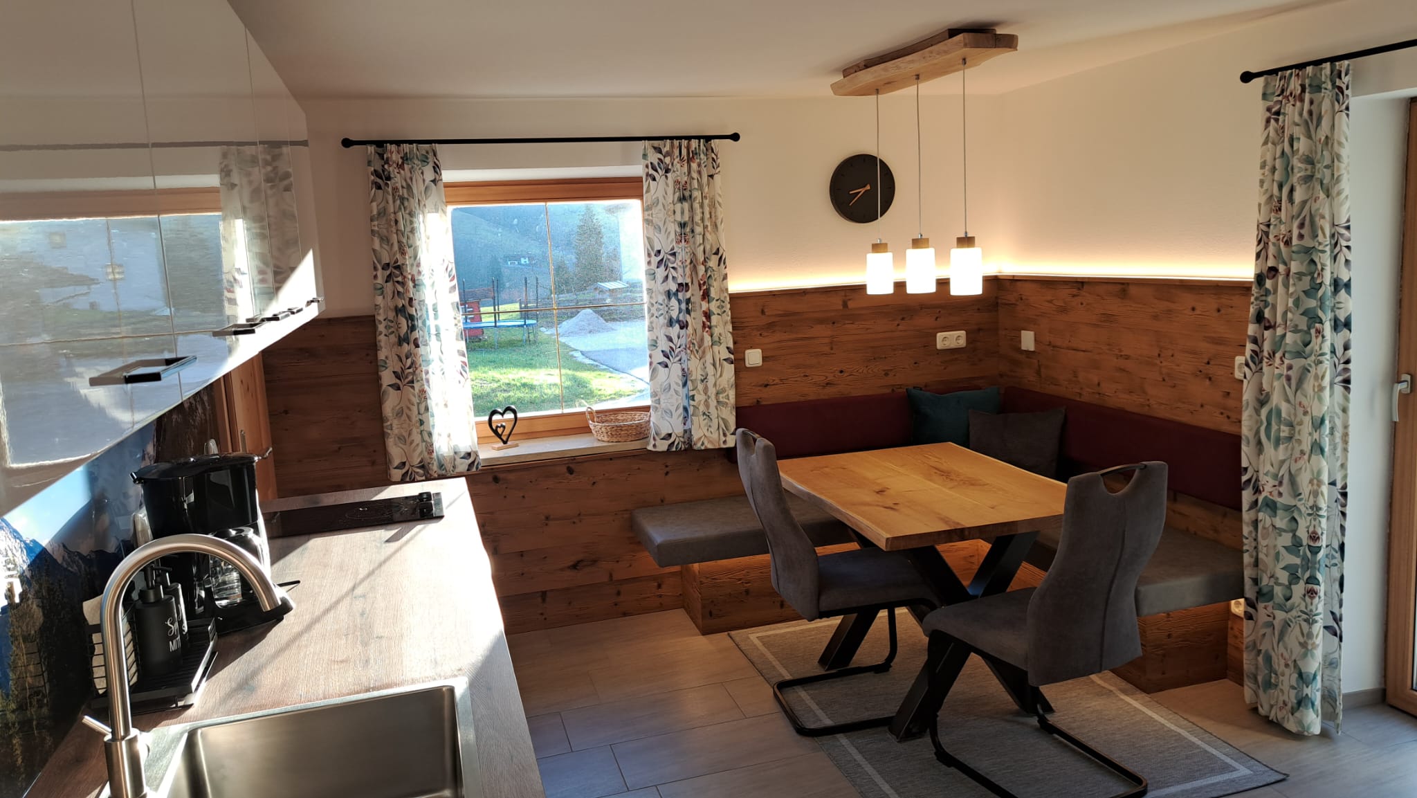 Unsere Wohnung Zinken besteht aus einer großen, komplett ausgestatteten Wohnküche mit Küchenzeile, Sitzecke und TV, einem Bad mit großer offener Dusche, Handtucktrockner, WC und großem Waschbecken sowie einem Schlafzimmer mit Boxspringbett, dreitürigem Schrank und Nachttischen.