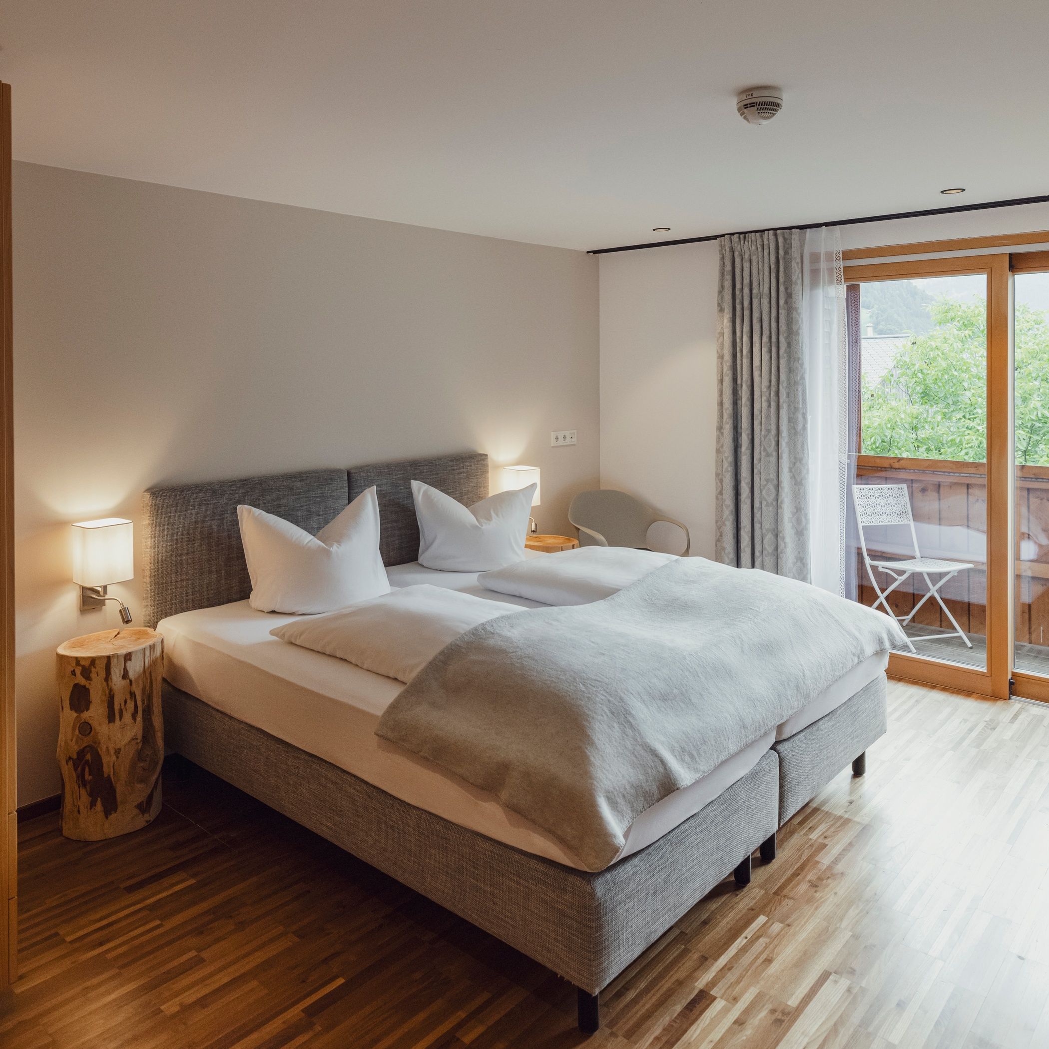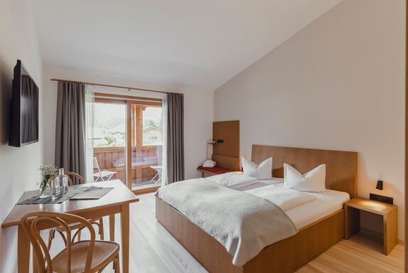 Zwischen 20 m² und 25 m2 großes Doppelzimmer im zeitgenössischen Bregenzerwälderstil. Die Zimmer verfügen über einen Balkon mit herrlichem Ausblick. Badezimmer mit Dusche und WC. Darüber hinaus TV, Safe, Telefon und Wifi.
