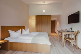 Der Wellnessbereich im Stammhaus ist für Gäste des Apartmenthauses NICHT inkludiert, kann aber bei ausreichender Verfügbarkeit gegen Gebühr dazu gebucht werden. Frühstück oder Abendessen im Stammhaus können auf Wunsch ebenfalls gerne dazu gebucht werden. Stammhaus und Apartmenthaus liegen nur 100 Meter voneinander entfernt.