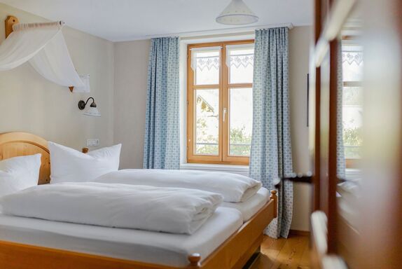 Ca. 40 m2 große Juniorsuite im gemütlichen Landhausstil. Geräumiger Wohn- und Schlafbereich mit Sitzecke und Lehmofen. Mit Couch und teilweise Balkon. Badezimmer mit Dusche und WC. TV, Safe, Telefon, Wifi