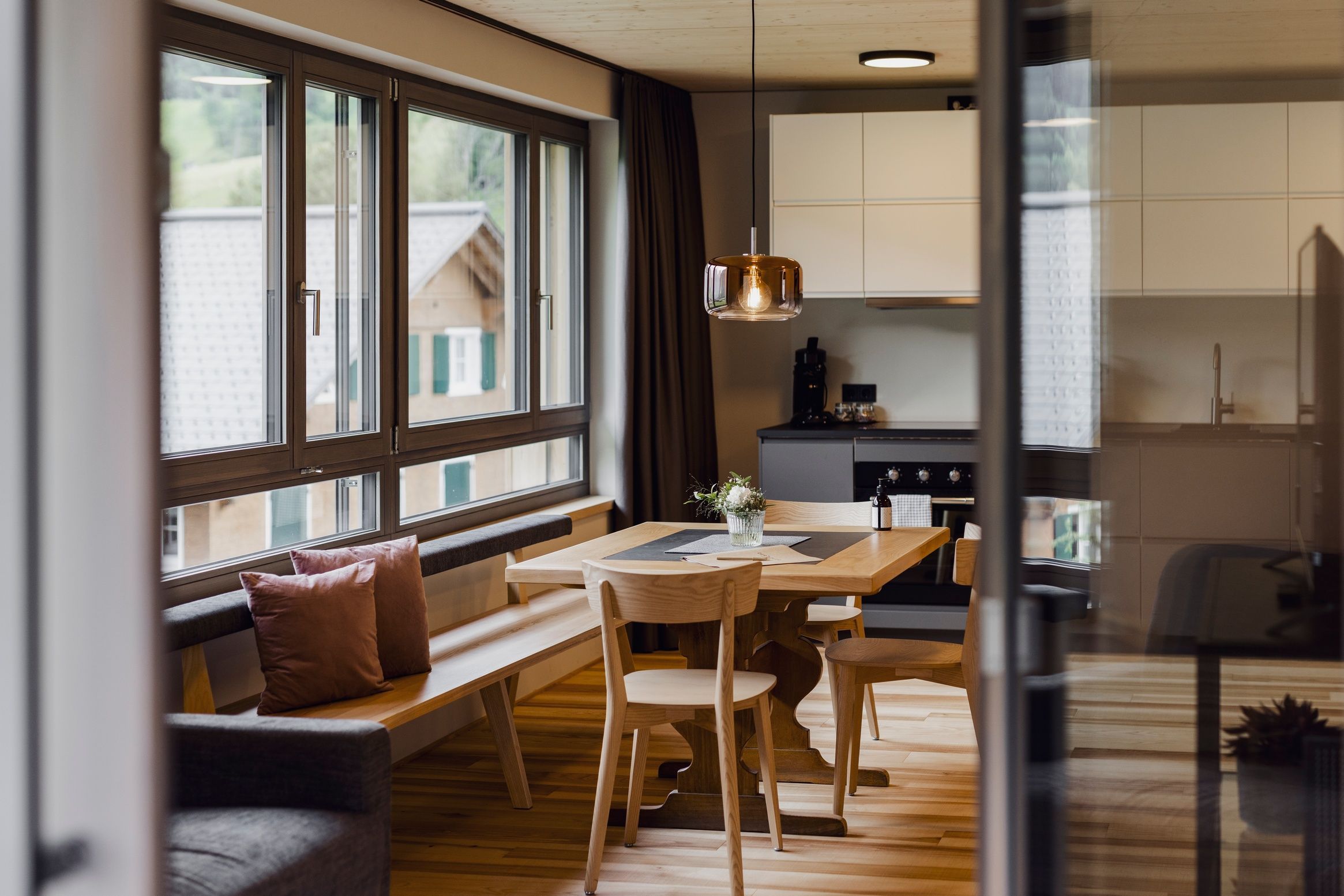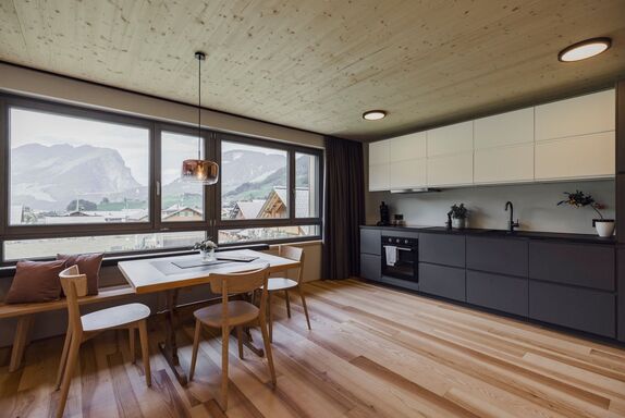 Wer mehr Platz, Flexibilität und modernes Design sucht, ist in unserem Apartmenthaus genau richtig. Die lichtdurchfluteten Ferienwohnungen wurden von renommierten Architekten entworfen und mit hochwertigen Materialien ausgestattet. Perfekt für Naturliebhaber: Skibushaltestelle, Langlaufloipen sowie Wander- und Bikewege starten direkt vor der Tür. Zudem stehen unseren Gästen eine kleine Gemeinschaftssauna sowie eine Tiefgarage kostenlos zur Verfügung. Ein weiteres Highlight im Apartmenthaus ist unser Tagescafé s'Frie, das durch seine moderne aber zugleich gemütliche Atmosphäre begeistert.