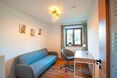 Die ebenerdige Wohnung (ca. 80 m²) verfügt neben einem großem Wohn-/Essbereich über ein geräumiges Schlafzimmer, einen weiteren Raum mit Schlaf- und Arbeitsmöglichkeit sowie Dusche/WC. Des weiteren gehört zur Wohnung ein Stellplatz sowie eine Terrasse in ruhiger Lage. W-Lan ist vorhanden.
