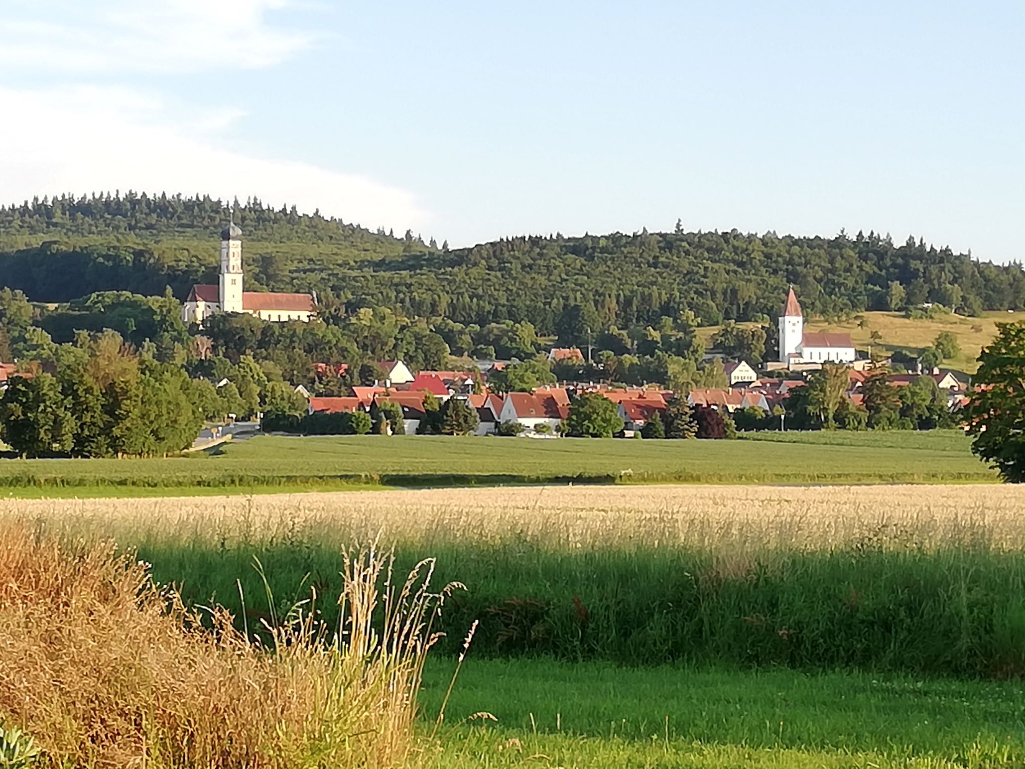 Die Kloster- und Wallfahrtskirche in Mönchsdegginen die Wies im Ries. Burgruine Hoch- und Niederhaus.