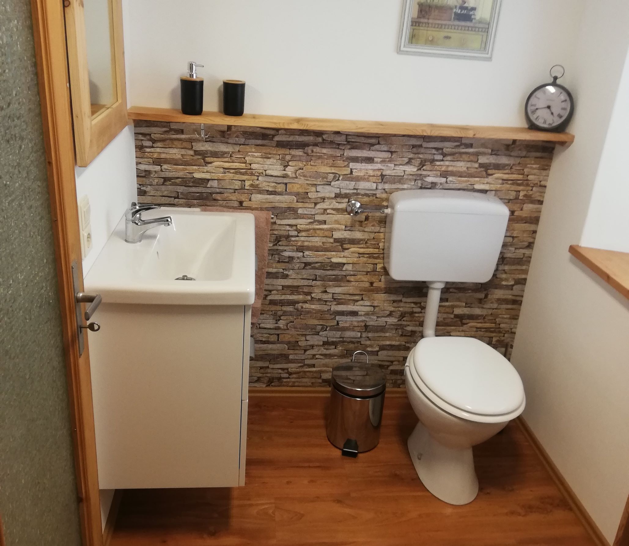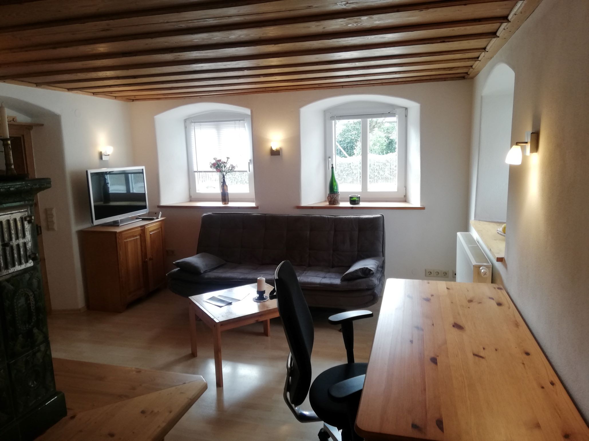 Entdecken Sie die Gemütlichkeit in unserem neu renovierten Häuschen. Es ist ein Schlafzimmer mit Doppelbett und eine Schlafcouch vorhanden. Die Küche ist mit einem Backofen, Kühlschrank mit Gefrierfach und mit einer Mikrowelle ausgestattet. Von der Küche aus gibt es eine Durchreiche zum großen Wohnraum, dort steht ein großer Tisch mit Sitzbank, eine Schlafcouch, ein Schreibtisch und der Fernseher. Das Bad hat eine Dusche, Waschbecken und WC. Es steht eine Waschmaschine, Trockner und W-Lan zur Verfügung. Des Weiteren gibt es einen Unterstellplatz für Fahrräder in der Garage.