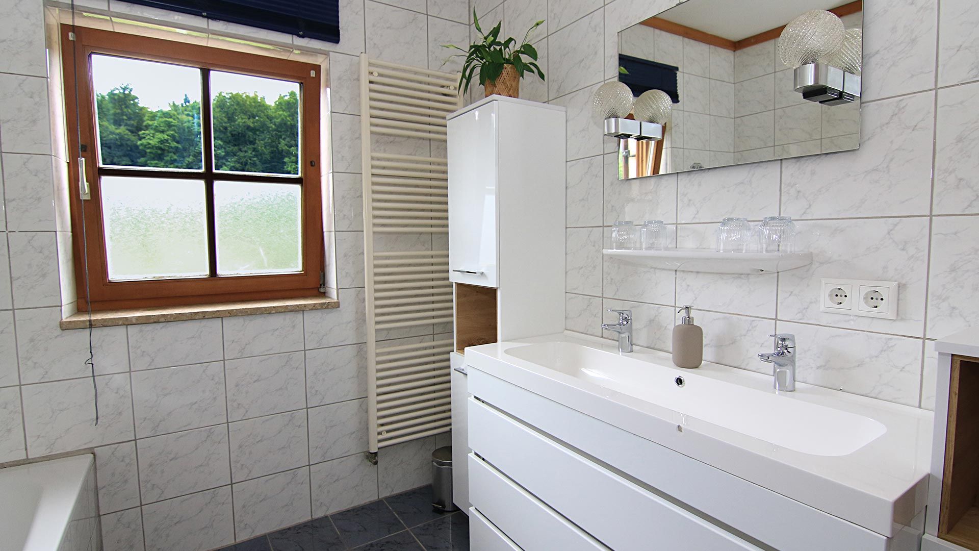 Badezimmer: Das Badezimmer verfügt sowohl über eine Badewanne als auch eine Dusche, sodass Sie je nach Vorliebe entscheiden können, wie Sie sich nach einem erlebnisreichen Tag erfrischen möchten.