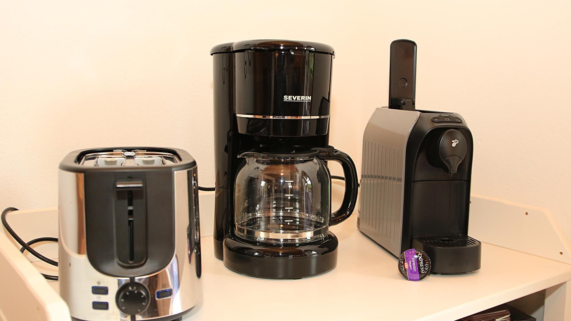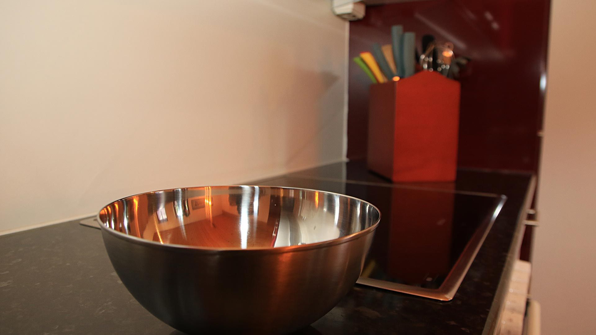 • Küche: Große, voll ausgestattete Küche mit Herd, Geschirrspüler, Mikrowelle, Kühlschrank, Kaffeemaschine und Wasserkocher sowie einem Esstisch für gemeinsame Mahlzeiten