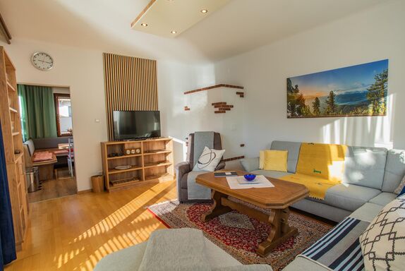 Perfekte Lage, viel Platz für gemeinsame Auszeiten & herrlicher Ausblick: Nur 2 Gehminuten von der Skibushaltestelle entfernt, genießen Sie hier Ruhe, Natur und einen traumhaften Bergblick. Auf 120 m² erwarten Sie 4 Schlafzimmer mit Boxspring-Doppelbetten und 1 Schlafzimmer mit zwei Einzelbetten. Zwei moderne Badezimmer, zwei separate WCs sowie eine voll ausgestattete Landhausküche mit Wohnbereich sorgen für Komfort. Vom Balkon genießen Sie die atemberaubenden Sonnenuntergänge der Region Schladming-Dachstein.