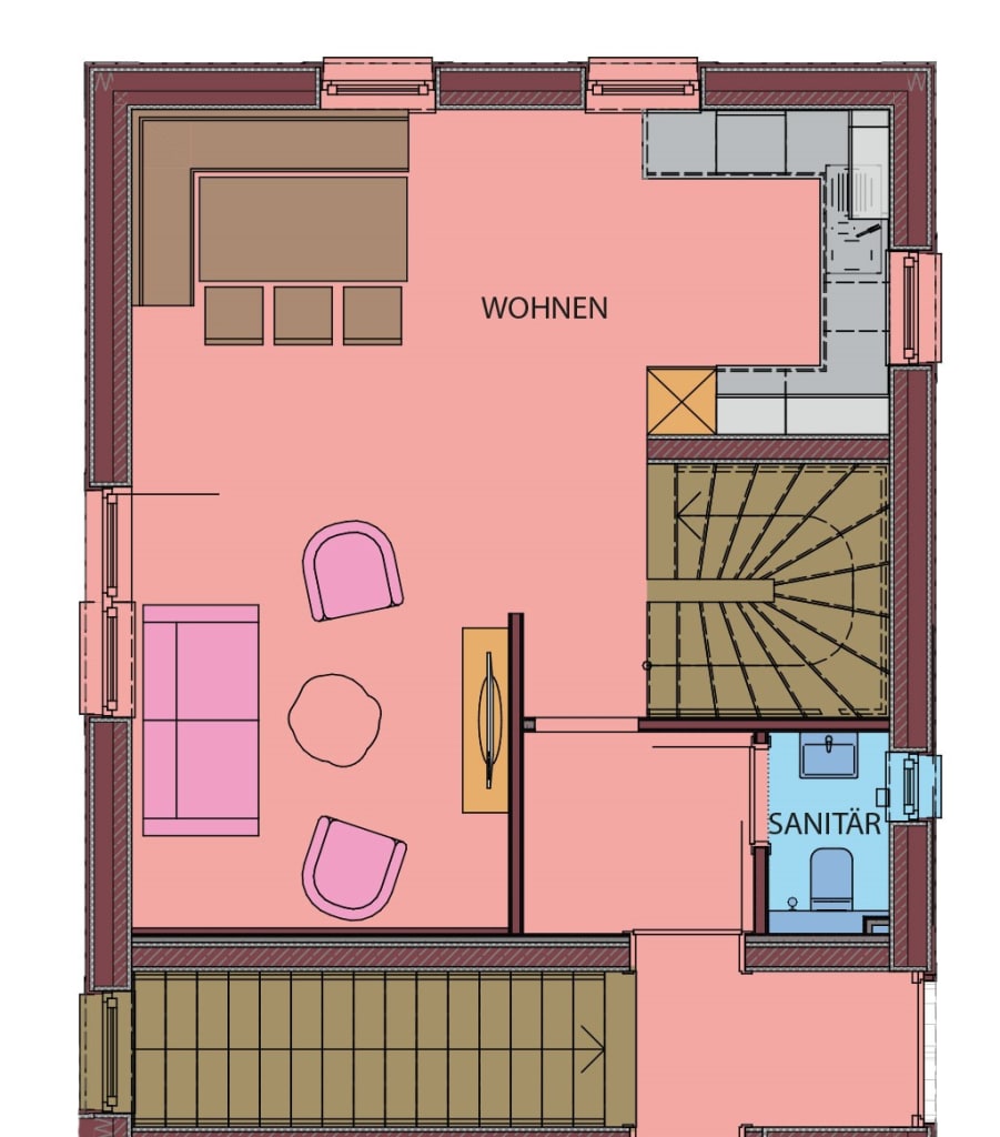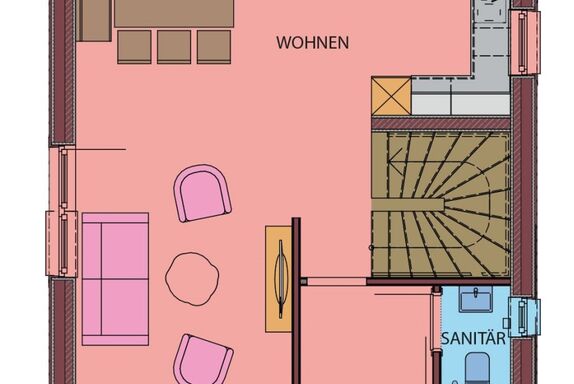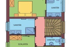 Das neue Ferienhaus verfügt über einen ebenerdigen Eingang, eine Terrasse und einen Balkon. Auf der oberen Etage befinden sich drei getrennte Schlafzimmer. 2 Schlafzimmer mit Doppelbett und 1 Schlafzimmer mit Stockbett, Kabel-TV, Zimmersafe, W-Lan, hauseigene Bademäntel. Außerdem gibt es zwei Badezimmer und drei WCs. Die Wohnküche bietet ausreichend Platz zum Kochen, Genießen und Relaxen und verfügt zudem über einen Zugang zur Terrasse. Die Küche ist mit allem ausgestattet, was das Herz begehrt: Geschirrspüler, Mikrowelle, E-Herd mit Backrohr, Kaffeevollautomat, Wasser- und Eierkocher, Toaster und vieles mehr.