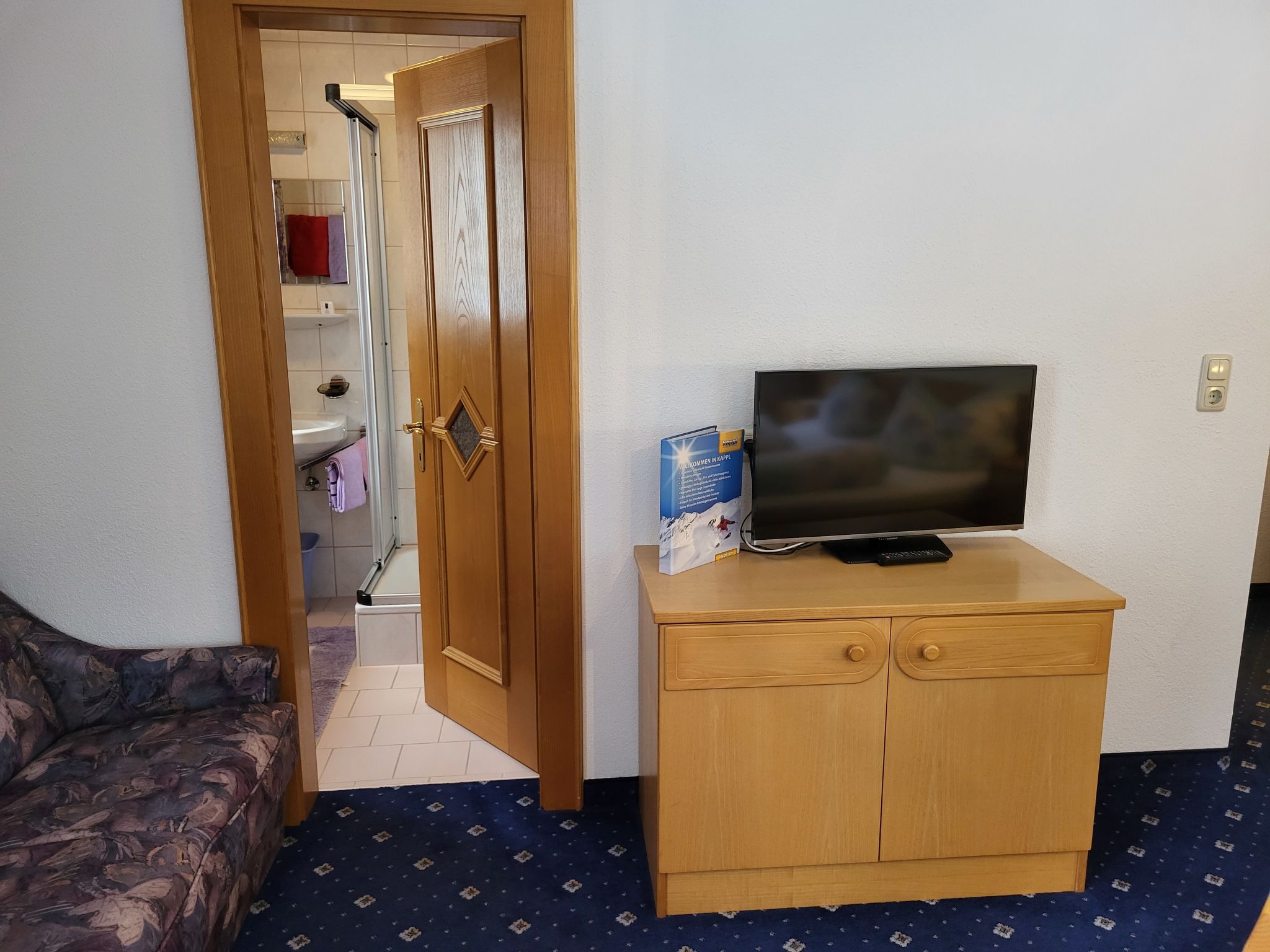 6-Zimmer-Wohnung 110 m2 auf 2 Stockwerken. Wohnküche (Backofen, Geschirrspüler, Toaster, Wasserkocher, Mikrowelle, Tiefkühler, elektrische Kaffeemaschine) mit Kabel-TV (Flachbildschirm). 2. Obergeschoss: 2 Doppelzimmer, jedes Zimmer mit 1 Diwanbett, Dusche/WC und Sat-TV (Flachbildschirm). Ausgang zum Balkon. 2 Doppelzimmer, jedes Zimmer mit sep. WC, Dusche und Sat-TV (Flachbildschirm). Ausgang zum Balkon. 1 Zimmer mit 1 Bett (90 cm, Länge 200 cm), Dusche/WC und Sat-TV (Flachbildschirm). Ausgang zum Balkon. Teppichboden. Schöne Sicht auf das Tal und die Skipiste. Zur Verfügung: Internet (WLAN, extra). Bitte beachten: Nichtraucher-Unterkunft. Maximal 1 Haustier/Hund erlaubt. ACHTUNG: Die Wohnung ist nicht in sich abgeschlossen. Das Mietobjekt erstreckt sich auf 2 Etagen (EG und 2. OG) und ist zum Teil zum Treppenhaus offen.