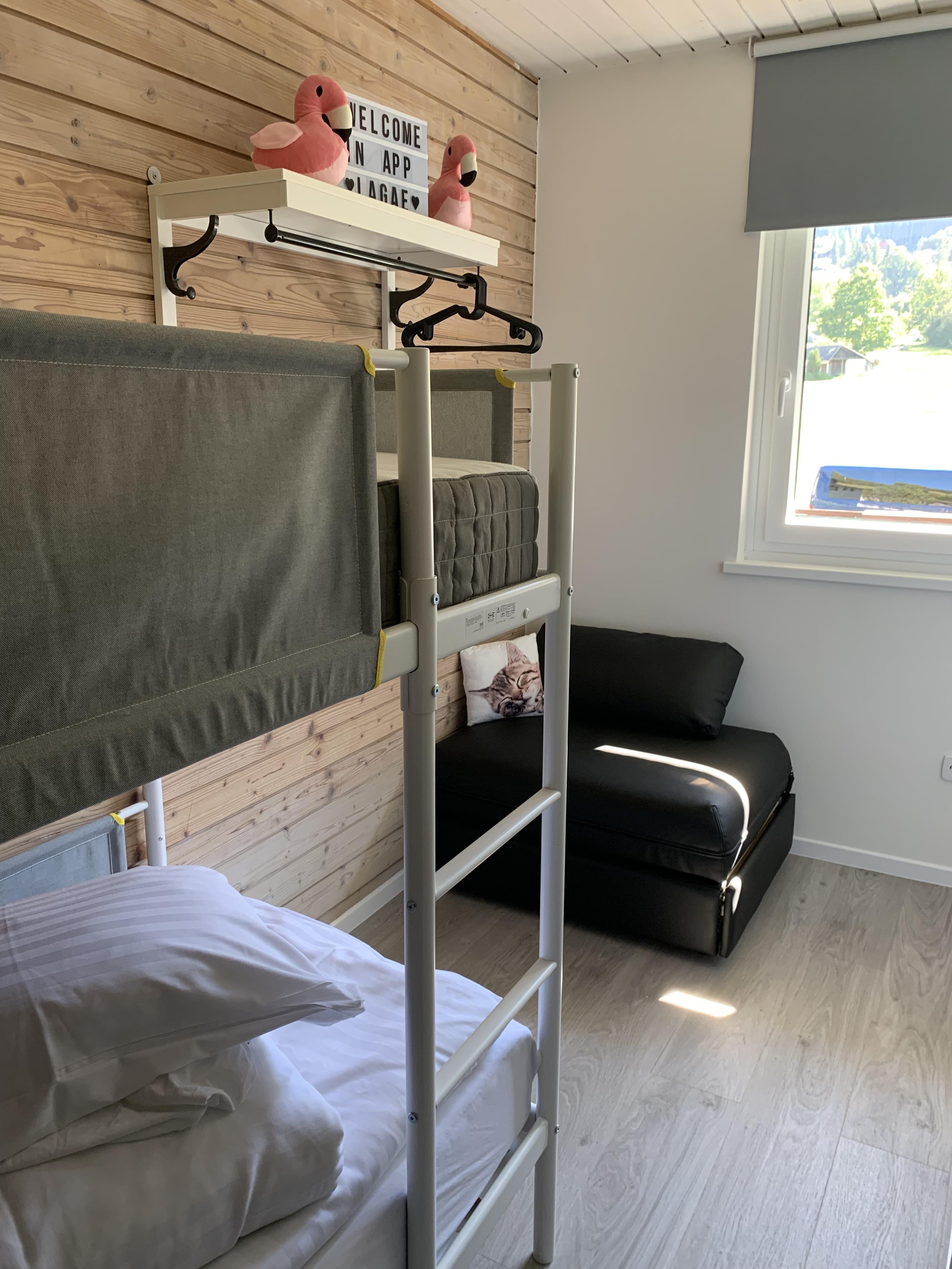 Drei-Zimmer-Appartement für 3-5 Personen ca. 55-65 m2, Wohnzimmer mit Sitzecke (teilweise Ausziehcouch), Essecke, Küche oder Kochnische, Schlafzimmer mit Doppelbett, Schlafzimmer mit Etagenbett oder Einzelbetten, Bad/WC, Balkon