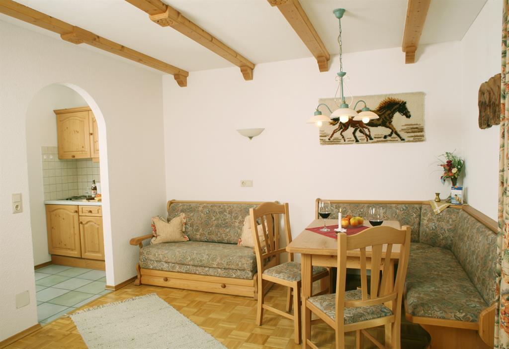 Geräumige Ferienwohnung mit separatem Schlafzimmer, voll ausgestatteter Küche, Bad, WC und Balkon. Auf Wunsch auch mit Frühstück bzw. Halbpension buchbar!