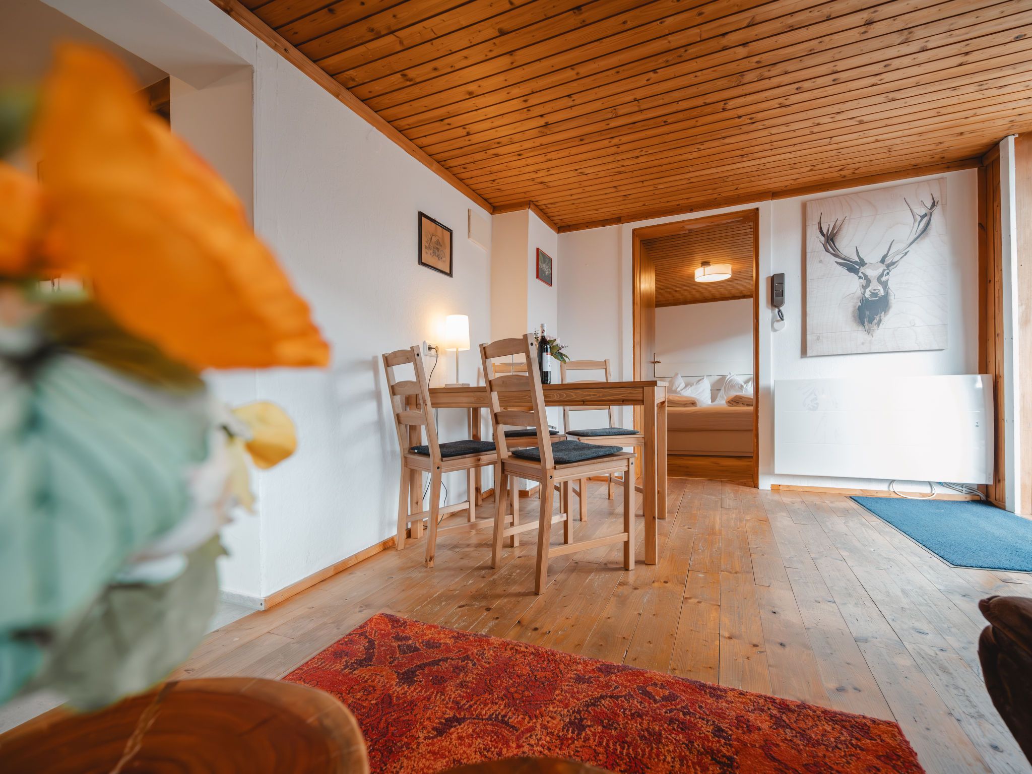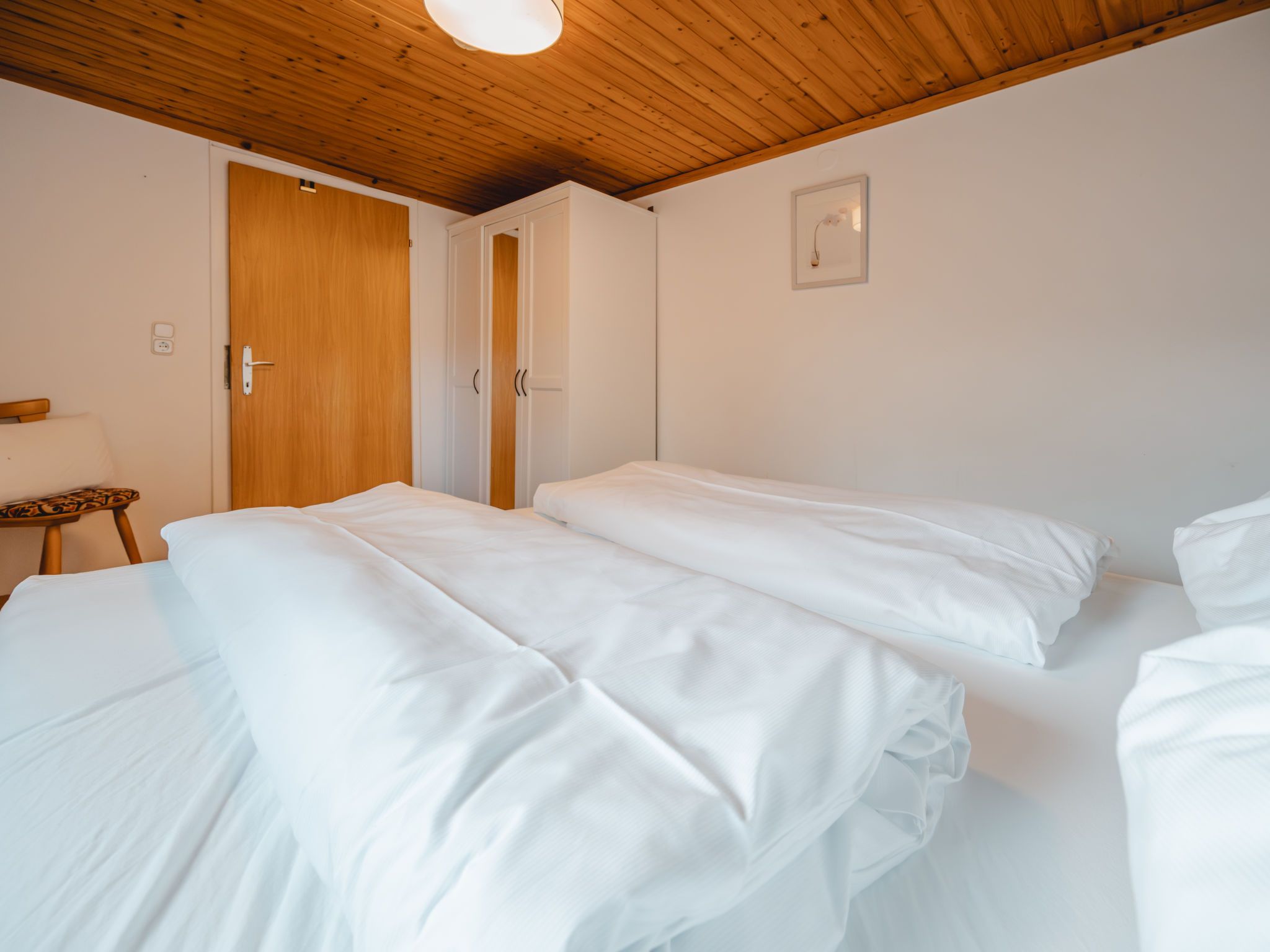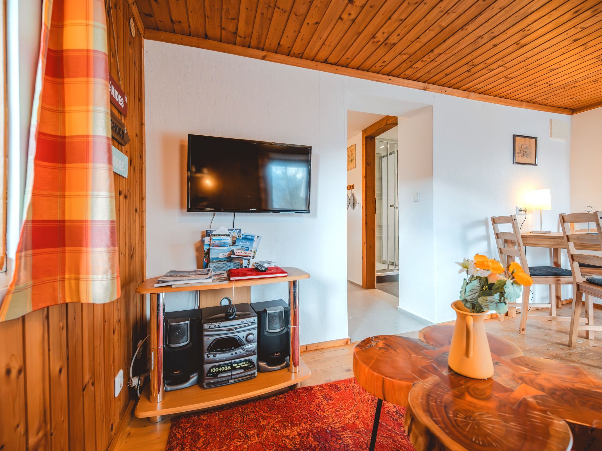 2-Zimmer-Wohnung 35 m2. Komfortabel und mit viel Holz eingerichtet: Wohn-/Schlafzimmer, Deckenhöhe 190 - 200 cm mit 1 Diwanbett, Esstisch und TV (Flachbildschirm), E-Heizung. 1 Doppelzimmer. Küche (4 Kochplatten, Backofen, Toaster, Wasserkocher, Mikrowelle, elektrische Kaffeemaschine). Dusche/WC. E-Heizung. Holzdielenboden. Kleine Terrasse, Garten. Terrassenmöbel. Sehr schöne Panoramasicht auf den See und die Landschaft. Zur Verfügung: Internet (Wireless LAN, gratis). Bitte beachten: geeignet für Familien. Rauchmelder. 50628-001671-2025