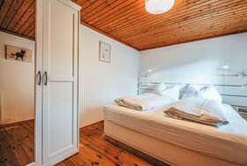 Ebenberghof mit Terrasse, 2-Zimmer-Wohnung 35 m2. Komfortabel und mit viel Holz eingerichtet: Wohn-/Schlafzimmer, Deckenhöhe 190 - 200 cm mit 1 Diwanbett, Esstisch und TV (Flachbildschirm), E-Heizung. 1 Doppelzimmer. Küche (4 Kochplatten, Backofen, Toaster, Wasserkocher, Mikrowelle, elektrische Kaffeemaschine). Dusche/WC. E-Heizung. Holzdielenboden. Kleine Terrasse, Garten. Terrassenmöbel. Sehr schöne Sicht auf die Landschaft. Zur Verfügung: Internet (WLAN, gratis). Bitte beachten: geeignet für Familien. Rauchmelder. 50628-001671-2025