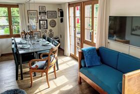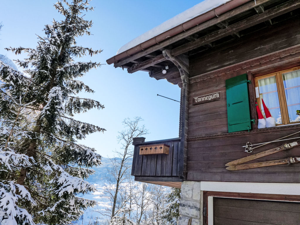 Sehr schönes, komfortables Einfamilienhaus Chalet Tannengüetli. Alleinstehende, sonnige Lage am Hang, an einer Strasse, Richtung Süden. Zur Alleinbenutzung: Grundstück (eingezäunt), gepflegter Garten mit Blumen und Bäumen. Terrasse, Gartenmöbel, Grill. Im Hause: Zentralheizung, Waschmaschine, Wäschetrockner, Skischuhtrockner. Zufahrt bis zum Haus. Im Winter bitte Schneeketten mitbringen, im Winter 4x4 empfohlen. Parkplatz (für 3 Autos) auf dem Grundstück, Einzelgarage. Maße: Höhe 180 cm. Einkaufsgeschäft 1.1 km, Lebensmittelgeschäft 1.1 km, Supermarkt 1.1 km, Restaurant 800 m, Bushaltestelle Tuftbach 160 m, Bahnstation Grindelwald Bahnhof 1.1 km, Freibad 2 km, Hallenbad 1.2 km. Golfplatz (9 Loch) 3.2 km, Gondelbahn 1.9 km, Skisportanlagen 1.5 km, Skibushaltestelle 160 m, Skischule 1.1 km, Kinderskischule 1.3 km, Langlaufloipe 2 km, Eisfeld 1.2 km, Kinderspielplatz 1.2 km. Nahe gelegene Sehenswürdigkeiten: Jungfrau Top of Europe. Bekannte Skigebiete sind gut erreichbar: Grindelwald Frist, Männlichen - Kleine Scheidegg. Bekannte Seen in der Umgebung sind gut erreichbar: Thunersee, Brienzersee. Wandergebiete: Jungfrau Region. Bitte beachten: Gratis Skibus. Der gratis Skibus fährt zum Skigebiet First und Männlichen - Kleine Scheidegg.