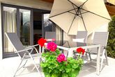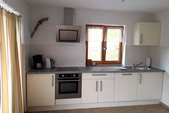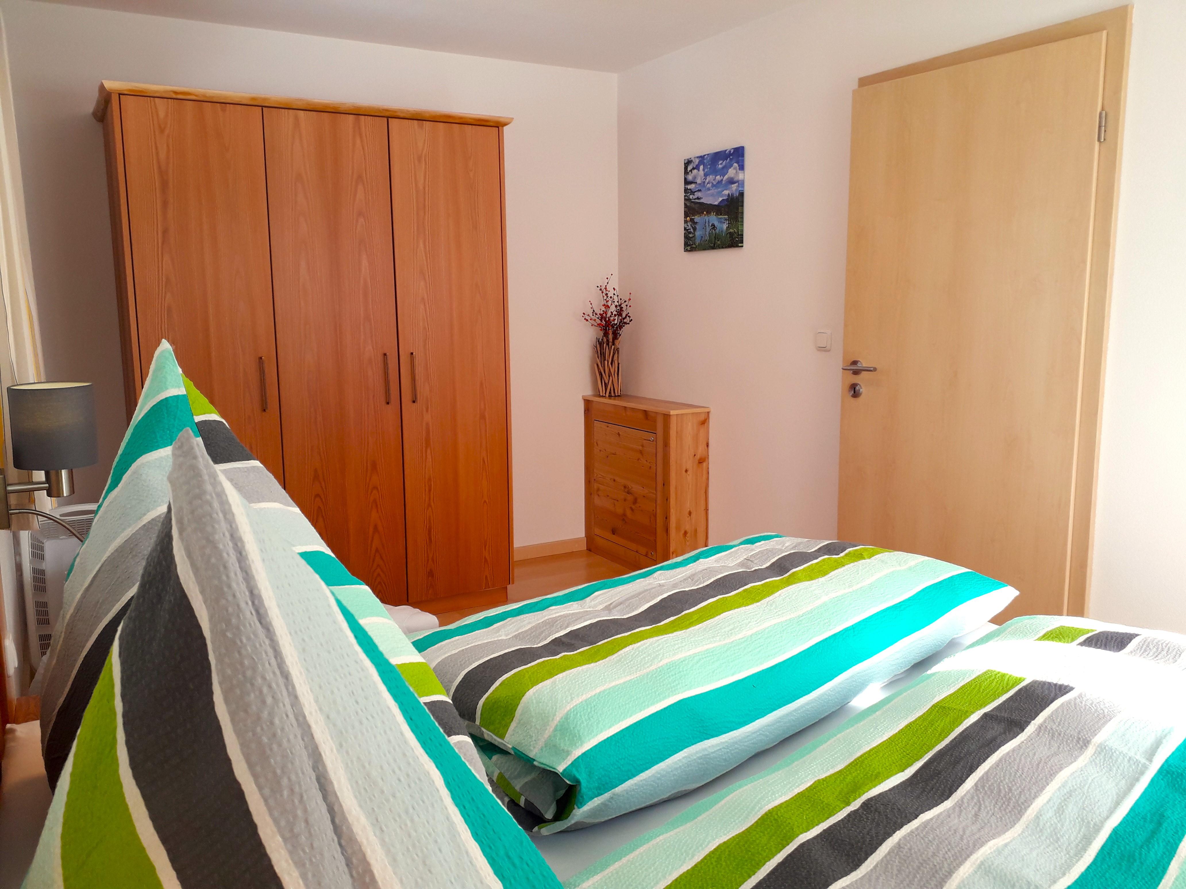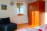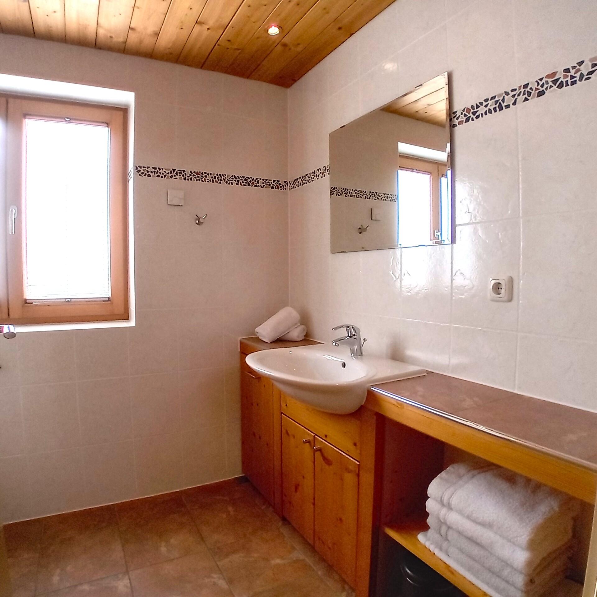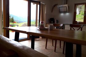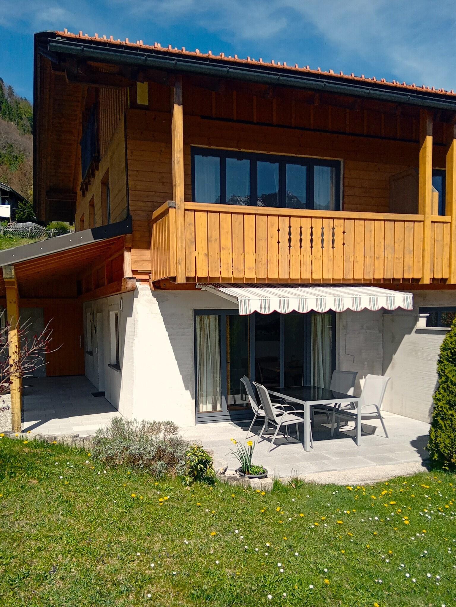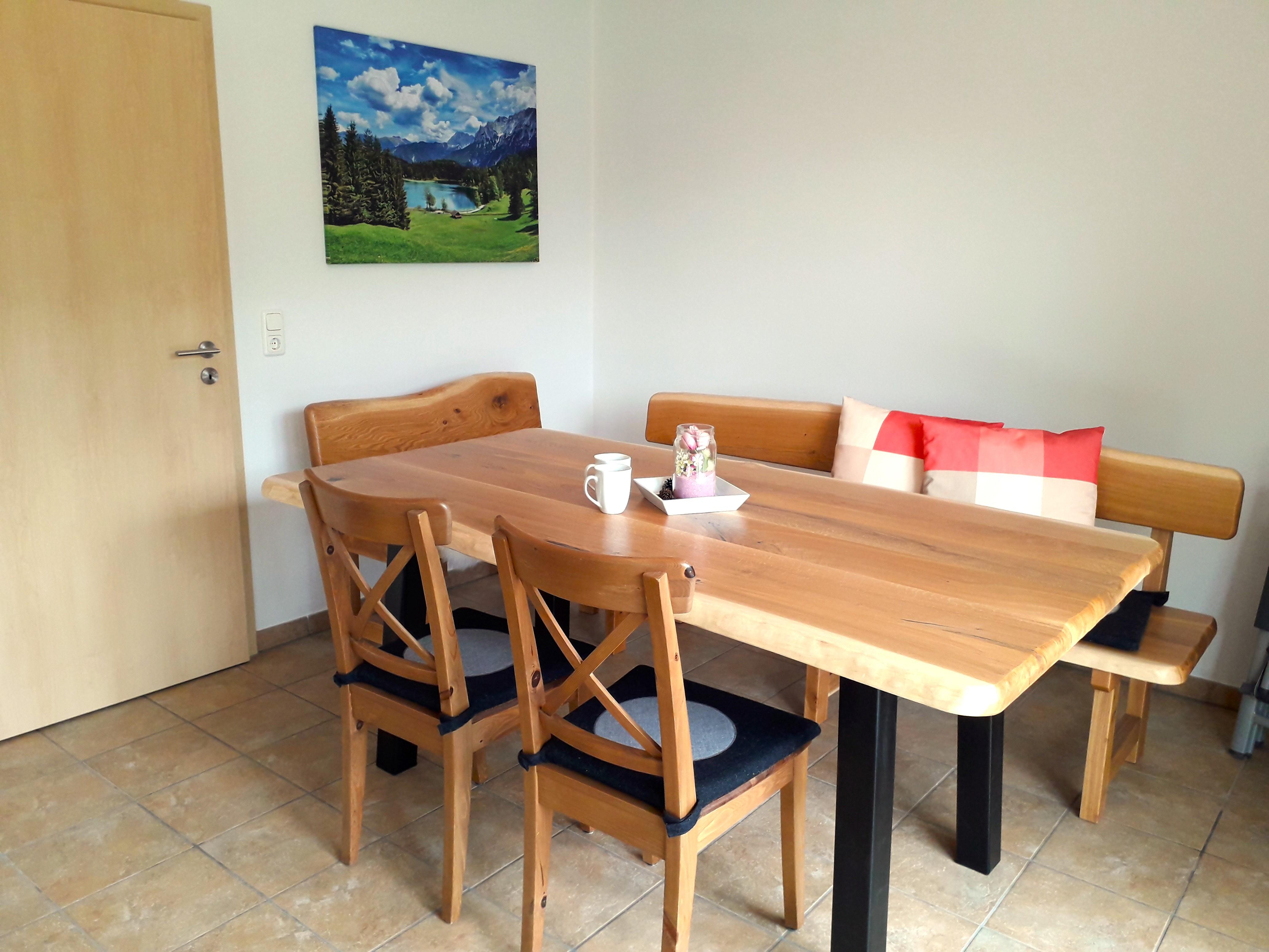 Unsere gemütliche Ferienwohnung mit 100qm bietet Platz für bis zu 4 Personen. Die Ferienwohnung erstreckt sich über 2 Stockwerke und verfügt über 2 separate Schlafzimmer, eine Küche/Esszimmer, ein Galerie-Wohnzimmer, ein Bad/WC sowie einen eigenen Waschkeller und eine eigene Terrasse sowie einen Balkon. Die Küche im Erdgeschoss ist voll ausgestattet mit einem Backofen, Ceran-Kochfeld, Geschirrspüler, Kühlschrank mit Gefrierfach, Toaster, Wasser-, Eierkocher und einer Kaffeemaschine. In der großen Essecke steht ein massiver Holztisch mit Bänken und Stühlen. Von dort haben Sie Zugang zur Terrasse, hier laden gemütliche Gartenmöbel zum Verweilen ein. Im 1. Stock befinden sich 2 separate Schlafzimmer mit jeweils einem Doppelbett und einem Schrank. Auch hier gibt es einen Balkon mit gemütlichen Gartenmöbeln. Das Bad verfügt über eine Dusche sowie ein WC und ein Waschbecken. Im 2. Stock ist ein gemütliches Galerie-Wohnzimmer mit 50-Flachbild-TV sowie einer gemütlichen, großen Couchlandschaft. Im Waschkeller befindet sich eine Waschmaschine sowie ein Trockenraum. Bettwäsche, Handtücher, Badetücher sowie Geschirrtücher sind vorhanden. Ein Kinderbett sowie ein Kinderhochstuhl können wir auf Anfrage gerne zur Verfügung stellen. Es gibt einen überdachten Auto-Stellplatz, sowie einen abschließbaren Garagenstellplatz auf Anfrage (gegen Gebühr). Zudem können Sie Ihre Fahrräder in einer Fahrradgarage abschließen. Gerne können Sie auch den Garten mit Liegewiese und Alpenpanorama-Blick nutzen.