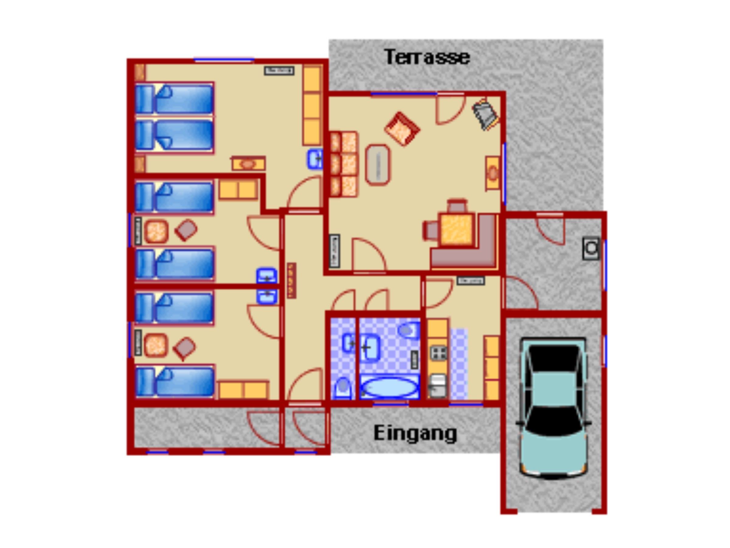 Für Koffer und sperriges Reisegepäck stehen 2 Abstellräume zur Verfügung. Ein Kinderbett sowie ein Hochstuhl für die kleinen Gäste vervollständigen die Einrichtung.