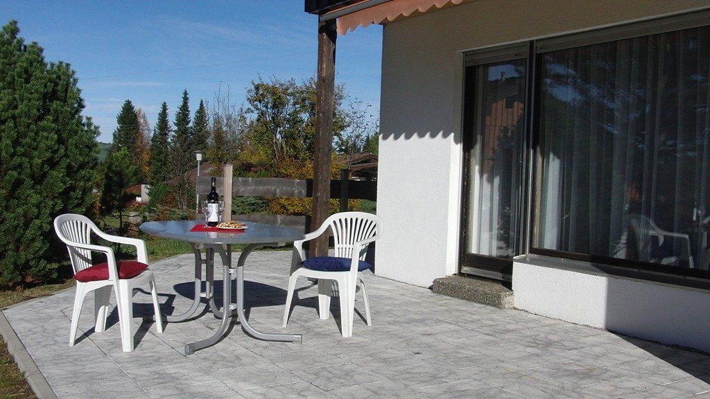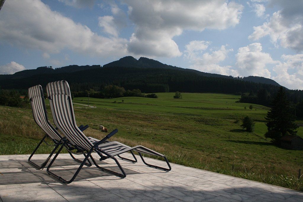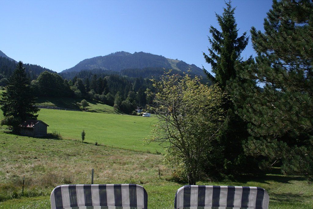Das Ferienhaus steht auf einem 1000 qm großen Grundstück am Rande des Feriendorfes. Von der großen Terrasse hat man einen herrlichen Blick auf die Allgäuer Alpen von der Alpspitze bis zum Grünten.