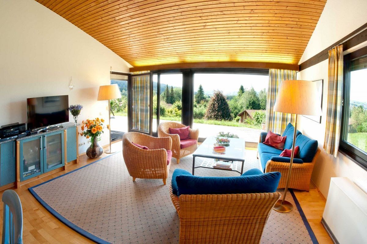 Der Aufenthalt auf der sonnigen Terrasse, die gepflegte Außenanlage, der unverbaute Blick in die Allgäuer Landschaft, den Grünten und herrliche Sonnenuntergänge ist Erholung pur.