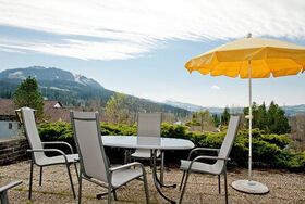 Von der ca. 50 m² großen Sonnenterrasse genießen Sie einen unverbaubaren Blick über Mittelberg und Wertach bis hin zum Wahrzeichen des Allgäus, dem Grünten, sowie zur Reutterwanne und der Alpspitze.