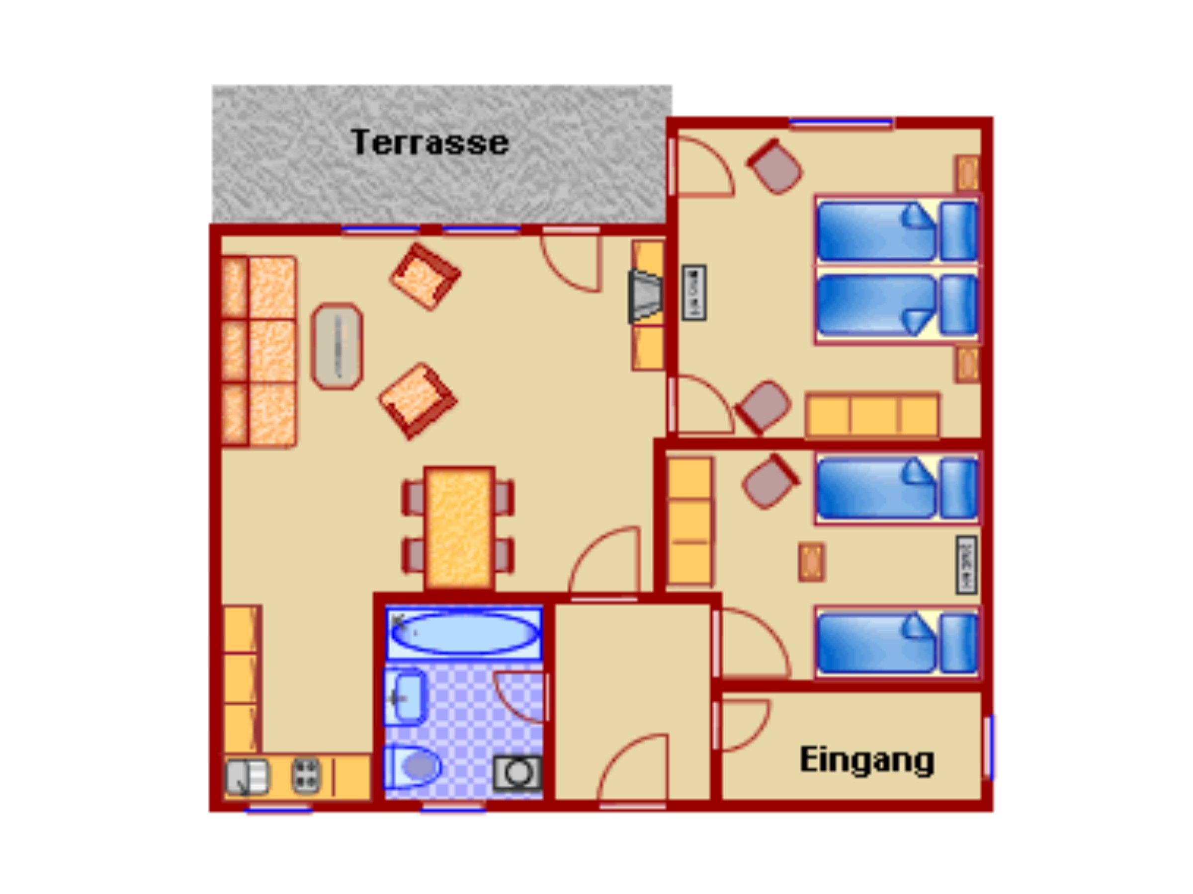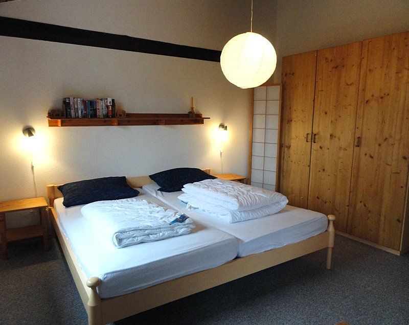 Das größere Schlafzimmer ist mit einem Doppelbett ausgestattet, das andere hat zwei Einzelbetten.